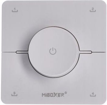 MiBoxer K0S – Panel obrotowy 4-strefowy CCT 2,4GHz Elegancki panel-pilot MiBoxer K0S z obrotowym pokrętłem pozwala na wygodne sterowanie czterema strefami oświetlenia LED typu CCT (regulowana barwa bieli). Urządzenie komunikuje się bezprzewodowo w paśmie 2,4 GHz RF, zapewniając stabilne sterowanie z odległości do 30 metrów. Wyposażony w magnetyczny montaż, co ułatwia zakładanie i zdjęcie urządzenia. Najważniejsze cechy Sterowanie 4 strefami niezależnie Regulacja jasności i barwy bieli (2700-6500K) Komunikacja 2,4 GHz RF, zasięg do 30 m Montaż magnetyczny łatwe umieszczenie na ścianie Zasilanie: 2 × bateria AAA Obsługuje produkty MiBoxer / Mi-Light 2,4G kompatybilne z CCT Specyfikacja techniczna Temperatura pracy: –10°C do +40°C Tryb obrotowy: skręt włączający / regulujący jasność lub barwę Obsługa wielu urządzeń jednocześnie Kompaktowe wymiary 86x86mm Zastosowanie Lampy i taśmy LED typu CCT Instalacje, w których chcesz sterować różnymi strefami światła białego Ściany, ścienne panele oświetleniowe, inteligentne instalacje domowe