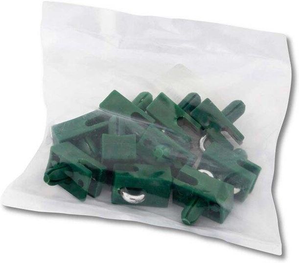 Przelotka do słupków w kolorze zielonym, marki Polargos.Jest to niezbędny element przy stawianiu ogrodzeń z siatki. Ułatwia mocowanie drutu naciągowego siatki do słupka.Pakowana po 10 sztuk.