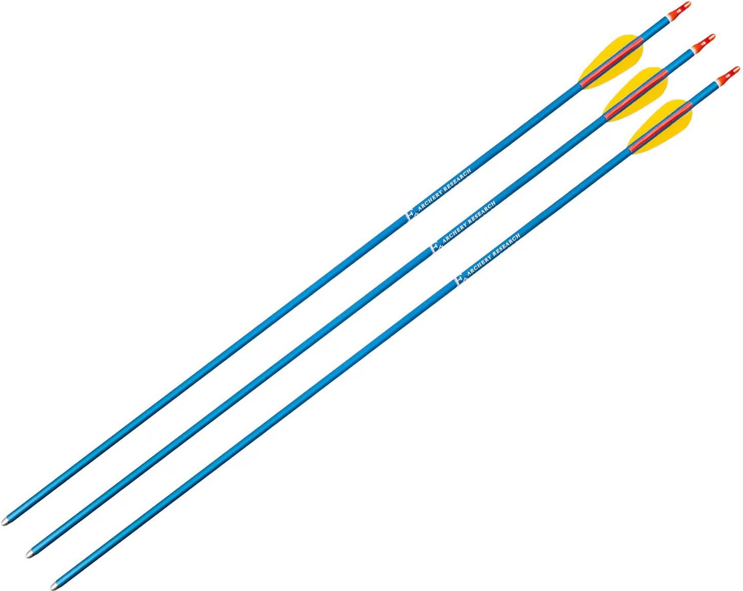 Zestaw 3 strzał do łuku wykonanych z wytrzymałego aluminium o długości 29 cali (73,5 cm) i średnicy 8 mm. Każda z nich zakończona jest solidnym, metalowym grotem, który zapewnia trwałość i dobre właściwości penetracyjne. Strzały przeznaczone są do łuków o maksymalnym naciągu 73 cm.