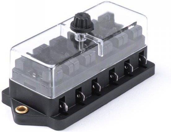Skrzynka bezpiecznikowa ceramiczna 6 gniazd amio-3 SKRZYNKA BEZPIECZNIKOWA CERAMICZNA 6 GNIAZD UNIWERSALNA SKRZYNKA BEZPIECZNIKóW Typ bezpiecznika: Płytkowy UNI/ATO 19mm ; standardowy Wymiar konektorów połączeniowych: 6,3 mm Ilość gniazd: 6 Rozstaw otworów montażowych: 105mm Rozmiar podstawy: 95mm x 52mm Zastosowanie: Maszyny rolnicze, traktory, kombajny, koparki, wózki widłowe, samochody osobowe, terenowe, ciężarowe, wozidła, quady, łodzie oraz inne dowolne pojazdy mechaniczne. Skrzynka wykonana z wysokiej jakości materiałów, szczelna, gwarantuje bezproblemowe użytkownie.