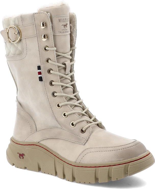Beżowe Botki Mustang Ocieplane Obuwie Damskie