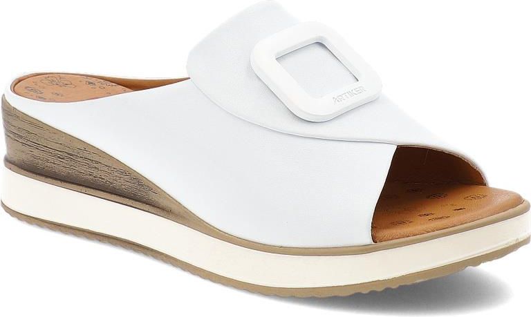 Białe Klapki Artiker Stylowe Obuwie Damskie Na Koturnie