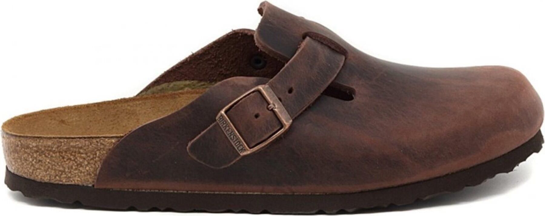Birkenstock mule Boston FL wąska szerokość brązowyKupując te mule, otrzymasz wysokiej jakości produkt, którym będziesz się cieszyć przez długi czas.MateriałKlapki Birkenstock są wykonane z następujących materiałów: * Cholewka: skóra * Podszewka: brak * Cholewka: brak * Podeszwa zewnętrzna: EVA * Wkładka: skóraObszary zastosowaniaMule są idealne nie tylko do pracy, ale także do różnych aktywności w sferze prywatnej.Cechy szczególneDzięki specjalnemu składowi materiału, mule imponują wysokim poziomem komfortu i trwałości.Grupa wiekowaGłówną grupą docelową mułów są dorośli. Birkenstock Boston to prawdziwy klasyk, który można nosić przez cały rok. Cholewka wykonana jest z miękkiego zamszu i ma anatomicznie ukształtowaną wkładkę z korka / lateksu. Ma również lekką wkładkę EVA i zamszową wyściółkę, która zapewnia stopom wsparcie i wygodę. Pasek z indywidualnie regulowaną metalową klamrą zapewnia bezpieczne i wygodne dopasowanie. Idealne sandały do noszenia na co dzień. Boston marki BIRKENSTOCK to prawdziwy klasyk, który można nosić przez cały rok. Boston ma legendarny status dzięki wyrafinowanemu, indywidualnemu designowi. Cholewka wykonana jest z bardzo grubej, olejowanej skóry nubukowej z otwartym wykończeniem. Anatomicznie ukształtowana wkładka korkowo-lateksowa Cholewka: olejowana skóra nubukowa Wyściółka wkładki: zamsz Podeszwa: EVA Szczegóły: jeden pasek z indywidualnie regulowaną metalową sprzączką Chodak BOSTON BS firmy Birkenstock jest powszechnie rozpoznawalny. Palce są dobrze chronione przez zamkniętą osłonę palców. Wytrzymała, natłuszczona skóra nubukowa jest solidna i łatwa w pielęgnacji. Model posiada również miękką skórzaną wyściółkę. Wkładka (niewymienna) jest pokryta skórą i zapewnia przyjemny klimat dla stóp. Szerokość odpowiada wąskiemu kształtowi Birkenstock i najlepiej pasuje do stóp o normalnej szerokości. Obcas jest płaski na całej długości, a but można łatwo założyć i zdjąć za pomocą zapięcia. Kwadratowy kształt buta ma dwie zalety: wygląda sportowo i jest wygodny w noszeniu dla stopy i palców. Rozmiar buta jest regularny. BIRKENSTOCK to nadal rodzinna firma, która pielęgnuje tradycję. BIRKENSTOCK oznacza produkty najwyższej klasy, które są starannie wytwarzane z wielką dbałością o szczegóły i dużym udziałem pracy ręcznej, a zasadą każdej generacji BIRKENSTOCK jest przyjęcie specyfikacji natury jako punktu odniesienia w celu promowania i utrzymania naturalnych funkcji stopy. Fason: chodaki. Kolor: Brązowe. Materiał cholewki: Skóra naturalna. Materiał podeszwy: Materiał syntetyczny. Przeznaczenie: uniwersalne. Rodzaj: Damskie. Rodzaj wnętrza: Skóra naturalna. Sezon: na lato. Typ zapięcia: wsuwane. Wysokość obcasa: płaski (do 3 cm). Birkenstock Boston to brązowe chodaki dla kobiet. Buty mają płaski obcas i są idealne do swobodnego wyglądu. Mają klamrę, która pozwala na indywidualne dopasowanie. Buty są idealne do noszenia w czasie wolnym i mają łatwą w pielęgnacji cholewkę. Marka Birkenstock oznacza wysoką jakość. Podeszwa jest wykonana z tworzywa EVA (octan etylenu i winylu), a szerokość jest normalna (G). Buty są idealne na sezon wiosenno-letni, a materiał wewnętrzny jest wykonany z materiału tekstylnego. Chodaki Birkenstock Boston to idealny wybór dla kobiet szukających wygodnego i stylowego obuwia. Męskie klapki Birkenstock wykonane z przyjemnie miękkiej skóry wysokiej jakości. Wnętrze buta wykonano z garbowanej bezchromowo skóry. Obcas jest płaski na całej długości. Podeszwa zewnętrzna jest wykonana z materiału EVA. But ma regularny rozmiar. - Birkenstock Boston BS - olejowana skóra nubukowa - wkładka z naturalnego korka - wąska szerokość - odporna na ścieranie i amortyzująca podeszwa zewnętrzna EVA - wysoki komfort noszenia - zapiętek - wsparcie łuku poprzecznego z podkładką - zewnętrzne i wewnętrzne wsparcie łuku podłużnego Birkenstock Ladies Boston BS Brązowe klapki męskie Birkenstock Chodak Boston ma cholewkę z olejowanej skóry nubukowej. Ma ona równą, gładką i wytrzymałą powierzchnię. Podeszwa zewnętrzna wykonana z materiału EVA zapewnia przyjemną amortyzację i jest odporna na stałe ciepło, oleje i rozpuszczalniki. Wkładka z korka Birkenstock zapewnia dodatkowy komfort. Sandały są popularne do pracy i wypoczynku.