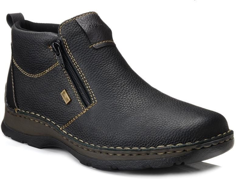 Skórzane buty męskie zimowe marki Rieker. Wnętrze ocieplane wełną naturalną. Specjalna wkładka Rieker Antistress® zapewnia komfortowe użytkowanie niezależnie od podłoża. Zamki po obu stronach cholewki ułatwiają zakładanie. Obuwie bardzo wygodne i świetnie dopasowujące się do stopy. Zwiększona szerokość cholewki. Rozmiarówka typowa - pasuje zazwyczaj noszony rozmiar. Do zmierzonej długości stopy dodaj około 0,5 cm i dobierz rozmiar z tabeli.