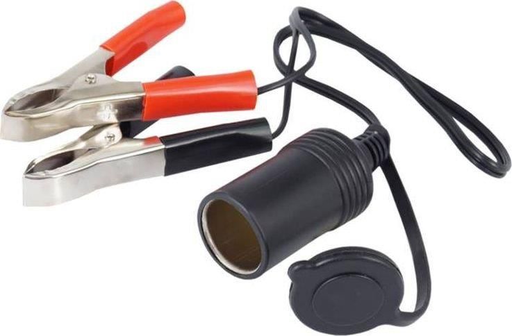 Gniazdo Elektryczne EURO z Kablem 40cm i Krokodylkami | MAX 8A Służy do podłączenia urządzeń elektronicznych z wtyczką typu EURO do akumulatora samochodu osobowego. Dane techniczne Natężenie maksymalne 8A Zasilanie 12V Przewód długości 40cm Wymiary produktu (mm) 100 x 70 x 35 Uwaga: aby nie spowodować zwarcia należy pamiętać o prawidłowym podłączeniu. Czerwona klema na + bolcu, czarna klema na - bolcu.