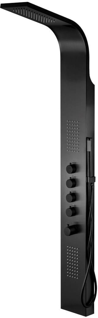 Corsan panel prysznicowy z termostatem S-003 SAMSARA T CZARNY Parametry techniczne: Wysokość - 1650mm, Szerokość - 190mm, Wysięg deszczownicy - 500mm, Odległość od ściany - 70mm, Wąż - 1500mm, Prysznic ręczny - 200mm, Waga - 10kg Korpus panela: stal nierdzewna KOLOR CZARNY- w panelu Samsara stal …