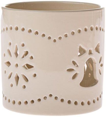 Kremowy ceramiczny świecznik z ażurowym wzorem śnieżynki oraz świątecznego dzwoneczka marki Dakls. Przenieś się w magiczny świat świątecznych dekoracji z tym uroczym, kremowym świecznikiem ceramicznym, ozdobionym misternym ażurowym wzorem śnieżynki oraz dzwoneczka. Ten ozdobny świecznik o wysokości 10,8 cm łączy w sobie klasyczny styl z nowoczesną estetyką, co czyni go doskonałym dodatkiem do każdego wnętrza. Ażurowe detale w kształcie śnieżynek i dzwoneczków nie tylko przyciągają wzrok, ale również przepuszczają delikatne światło, tworząc ciepłą, przytulną atmosferę. Każde zapalenie świeczki przekształca go w wyjątkowy element dekoracyjny, który doda magii i elegancji Twojemu domowi w okresie zimowym. Dzięki praktycznemu otworowi na górze kominka, wymiana świecy jest prosta i wygodna, co ułatwia codzienne użytkowanie. Kremowy kolor świecznika doskonale harmonizuje z różnorodnymi stylami aranżacji, od klasycznych po nowoczesne, a także doskonale wpisuje się w świąteczną estetykę. Świecznik będzie wspaniałym akcentem na stole, kominku czy parapecie, tworząc nastrojowy klimat podczas rodzinnych spotkań czy romantycznych wieczorów. Ten ceramiczny świecznik z ażurowymi motywami to również idealny pomysł na prezent dla bliskich, którzy cenią sobie elegancję i unikalny styl. Dodaj odrobinę świątecznego blasku do swojego wnętrza i rozświetl zimowe wieczory przytulnym światłem! Wzór: IMN593 Produkt 1 x świecznik Wymiary wysokość 10,8 cm średnica 11 cm średnica wlotu 9,8 cm Materiał ceramika Użytkowanie ozdobne