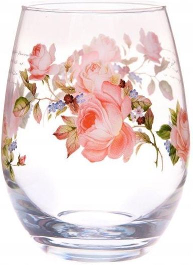Szklanka do herbaty kawy wody róża kubek ozdobny kwiat (17384) Duża szklanka w kształcie beczułki, ozdobiona motywem róż marki Dakls. Szklanka w kształcie beczułki to prawdziwa celebracja romantyzmu i elegancji, która wnosi do codzienności wyjątkowy nastrój. Jej subtelny, pękaty kształt przywołuje na myśl dawne, pełne uroku chwile, kiedy życie toczyło się wolniej, a każdy drobiazg miał swoje miejsce i znaczenie. Niezwykle delikatne zdobienia - róże i kolorowe kwiaty – rozkwitają na szklanej powierzchni niczym wiosenny ogród, otaczając Cię aurą piękna i spokoju. Pojemność szklanki 440 ml (pojemność liczona po rant szklanki). Każde użycie tej szklanki to chwila zatrzymania się w biegu codzienności, moment pełen harmonii i przyjemności. Doskonale sprawdzi się do ulubionej kawy, herbaty czy orzeźwiającej lemoniady, dodając każdemu napojowi odrobiny magii. Jej kwiatowe wzory, przypominające delikatny haft na finezyjnej tkaninie, sprawiają, że każda chwila spędzona z nią staje się bardziej wyjątkowa i romantyczna. Szklanka wygodna w użytkowaniu i prosta w utrzymaniu czystości. Można ją swobodnie myć w zmywarce, co ułatwi codzienne użytkowanie i zaoszczędzi nasz cenny czas. To naczynie nie tylko zachwyca swoim wyglądem, ale także przenosi w świat wspomnień – cichych wieczorów przy świecach, spacerów po ukwieconych polanach i szeptów delikatnych rozmów. Jest idealnym wyborem dla tych, którzy w przedmiotach codziennego użytku szukają nie tylko praktyczności, ale też emocji i wyjątkowego stylu. Idealna na prezent dla kogoś, kto ceni piękno w drobnych rzeczach, lub jako ozdoba własnego stołu, która wnosi odrobinę romantycznej atmosfery do każdego dnia. Wzór: DOR24002 Produkt 1 x szklanka Wymiary średnica górna 6,4 cm średnica w najszerszym punkcie szklanki 8 cm wysokość 11,5 cm pojemność całkowita 440 ml pojemność użytkowa około 400 ml Materiał szkło Użytkowanie dopuszczone do kontaktu z żywnością można myć w zmywarce