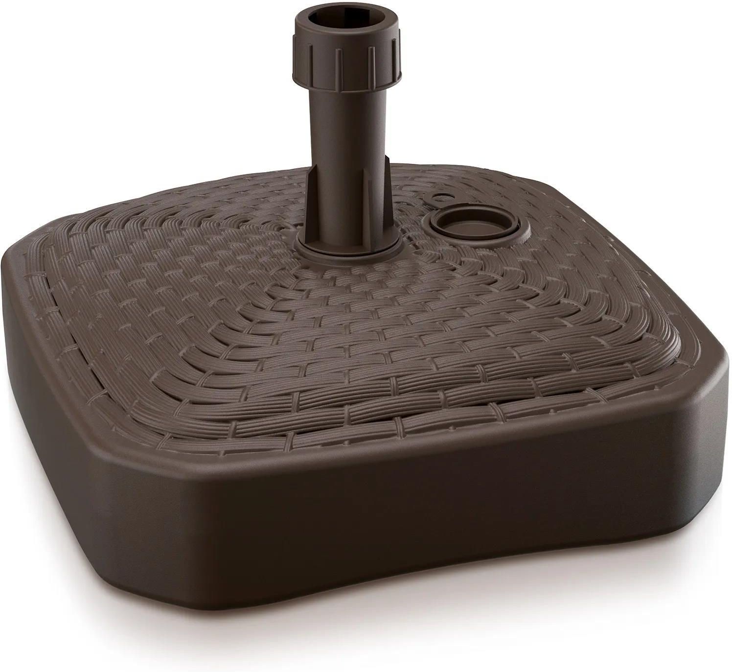 Podstawa kwadratowa pod parasol Umbrella - Umbranbsp;nbsp;nbsp; długość - 39 cm nbsp;nbsp;nbsp; szerokość - 39 cm nbsp;nbsp;nbsp; wysokość - 13cm nbsp;nbsp;nbsp; pojemność - 12l nbsp;nbsp;nbsp; materiał - tworzywo sztuczne nbsp;nbsp;nbsp; Produkt PolskiInformacje dodatkowe:nbsp;nbsp;nbsp; Podstawa pod parasol służy do mocowania masztu parasola ogrodowego o średnicy od 24 do 30 mm. nbsp;nbsp;nbsp; Posiada otwór z korkiem do napełnienia wodą, lub piaskiem o średnicy 47 mm nbsp;nbsp;nbsp; Posiada wyjmowany trzpień redukcyjnyZalety:nbsp;nbsp;nbsp; Niezwykle trwała nbsp;nbsp;nbsp; Wykonana z odpornego na działanie czynników atmosferycznych i wytrzymałego tworzywa. nbsp;nbsp;nbsp; Podstawa wyposażona jest w pasujący do większości parasoli dostępnych na rynku grot do zamocowania sztyla.Funkcjonalna i solidna podstawa wykonana z wytrzymałego tworzywa sztucznego. Dzięki możliwości wypełnienia wodą lub piaskiem (aż do 12 litrów), zapewnia stabilne mocowanie parasola ogrodowego. Pasuje do masztów o średnicy od 24 do 30 mm – idealna do większości dostępnych na rynku parasoli. Dodatkowy trzpień redukcyjny umożliwia jeszcze lepsze dopasowanie.#9989; Odporna na warunki atmosferyczne#9989; Wyprodukowana w Polsce#9989; Kompaktowe wymiary – łatwa do przechowywania#9989; Wygodny korek do szybkiego napełnianiaTwój parasol zasługuje na solidną podstawę! Nie pozwól, by pierwszy podmuch wiatru popsuł Ci relaks na tarasie! Nasza wytrzymała podstawa o pojemności 12L to niezawodne wsparcie dla każdego parasola ogrodowego. Wystarczy wypełnić ją wodą lub piaskiem, by cieszyć się stabilnością nawet przy silniejszym wietrze.Zaprojektowana z myślą o praktyczności – wbudowany korek ułatwia napełnianie i opróżnianie, a redukcyjny trzpień pozwala dopasować ją do większości masztów. To produkt polski, wykonany z odpornego tworzywa – gotowy na każde lato i każdą pogodę. Ciekawostki i protipy: nbsp;Ciekawostka:nbsp;nbsp;nbsp; Wypełnienie podstawy piaskiem daje większą stabilność niż woda – jest cięższy i bardziej odporny na przemieszczenie!nbsp;nbsp;nbsp; Na koniec sezonu opróżnij podstawę i przechowuj ją w suchym miejscu – dzięki temu posłuży Ci przez wiele lat bez odkształceń.nbsp;nbsp;nbsp; Jeśli średnica Twojego masztu to 24 mm, użyj redukcyjnego trzpienia – unikniesz chybotania i przechyleń parasola.