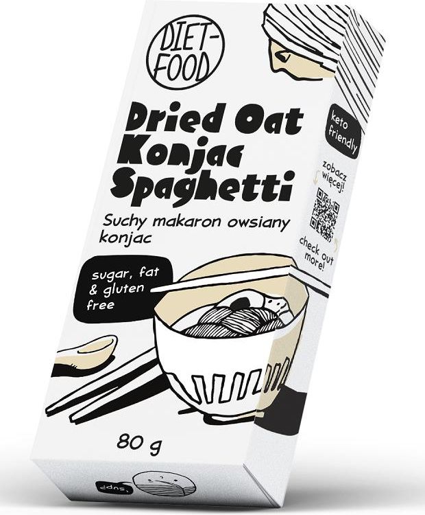 Suchy Makaron Owsiany Shirataki Konjac Spaghetti 80 g | Niskokaloryczny, Bezglutenowy, Szybki w Przygotowaniu Suchy makaron konjac to przełomowy produkt stworzony z myślą o osobach dbających o zdrowie i smukłą sylwetkę. Wykonany z glukomannanu, rozpuszczalnego błonnika pochodzącego z korzenia rośliny konjac (Amorphophallus konjac), jest doskonałą alternatywą dla tradycyjnego makaronu. To doskonały wybór dla osób poszukujących niskokalorycznych, niskowęglowodanowych rozwiązań, które nie wymagają rezygnacji z przyjemności jedzenia. Główne zalety makaronu Dried Konjac Niskokaloryczny: Makaron zawiera jedynie 37 kcal na porcję, co sprawia, że jest idealnym wyborem dla osób na diecie redukcyjnej oraz tych, którzy dbają o utrzymanie prawidłowej wagi. Bezglutenowy: Naturalnie bezglutenowy, stanowi doskonałą alternatywę dla osób z celiakią, nietolerancją glutenu oraz tych, którzy chcą świadomie eliminować gluten ze swojej diety. Bez cukru i tłuszczu: Makaron konjac nie zawiera cukru ani tłuszczu, co czyni go idealnym rozwiązaniem w dietach ketogenicznych, niskokalorycznych oraz niskowęglowodanowych. Neutralny smak: Makaron doskonale pochłania smaki przypraw i dodatków, co czyni go uniwersalnym składnikiem w wielu potrawach. Szybki i łatwy w przygotowaniu: Wystarczy kilka minut gotowania, aby cieszyć się zdrowym i smacznym posiłkiem. Zastosowanie Makaron konjac to wszechstronny produkt, który doskonale sprawdzi się w wielu potrawach, takich jak: Stir-fry: Idealny do dań z woka z warzywami, tofu czy mięsem. Zupy: Świetnie komponuje się w orientalnych bulionach, kremach i innych lekkich zupach. Sałatki: Doskonały do lekkich, odświeżających sałatek z warzywami, grillowanym kurczakiem czy owocami morza. Łączy się z lekkimi sosami na bazie oliwy, cytryny czy jogurtu. Dania główne: Może zastąpić tradycyjny makaron w spaghetti i potrawach inspirowanych kuchnią azjatycką. Sposób przygotowania Wrzuć makaron do wrzątku i gotuj przez 8-10 minut. Przepłucz makaron czystą wodą. Dodaj ulubione przyprawy i ciesz się zdrowym posiłkiem. Skład i informacja alergiczna Składniki: mąka konjac (74%), skrobia z tapioki, woda, mąka owsiana (0,3%). Informacja alergiczna: Produkt może zawierać śladowe ilości glutenu. Wartości odżywcze w 100 g Wartość energetyczna: 154 kJ / 37 kcal Tłuszcz: 0,1 g (w tym nasycone: 0 g) Węglowodany: 8,6 g (w tym cukry: 0 g) Błonnik: 2,1 g Białko: <0,1 g Sól: 0 g Masa netto: 80 g Kraj pochodzenia: Chiny Przechowywanie Przechowywać w suchym, zacienionym i chłodnym miejscu. Suchy Makaron Owsiany Shirataki Konjac to idealna opcja dla osób szukających zdrowego i niskokalorycznego zamiennika tradycyjnego makaronu. Dzięki swoim właściwościom i wszechstronnemu zastosowaniu, doskonale wpisuje się w zdrową, zrównoważoną dietę!