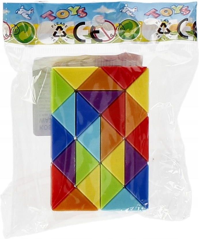 MEGA CREATIVE Kostka Magiczna Wąż 511335 Magiczna Kostka Wąż MEGA CREATIVE zapewni każdemu ochotnikowi nie lada gratkę podczas próby jej ułożenia! Pozwól swojemu dziecku rozwinąć zdolności ruchowo-myślowe oraz popracować nad zdolnościami manualnymi i wyobraźnią. Kostka zbudowana z kilkudziesięciu kostek w kształcie trójkątów i prostokątów, które po rozłożeniu przypominają Węża. Można je w dowolny sposób przekładać i składać, tworząc nowe figury. Zabawka wykonana z plastiku. wymiary opakowania(dł. x wys. x gł.) [cm]: 9x10x2 wymiary produktu (dł. x wys. x gł.) [cm] 5x7x2 waga opakowania (kg.) 0,02kg waga produktu (kg.) 0,02kg Pakowana w woreczek foliowy. Produkt przeznaczony dla dzieci w wieku: 3+.