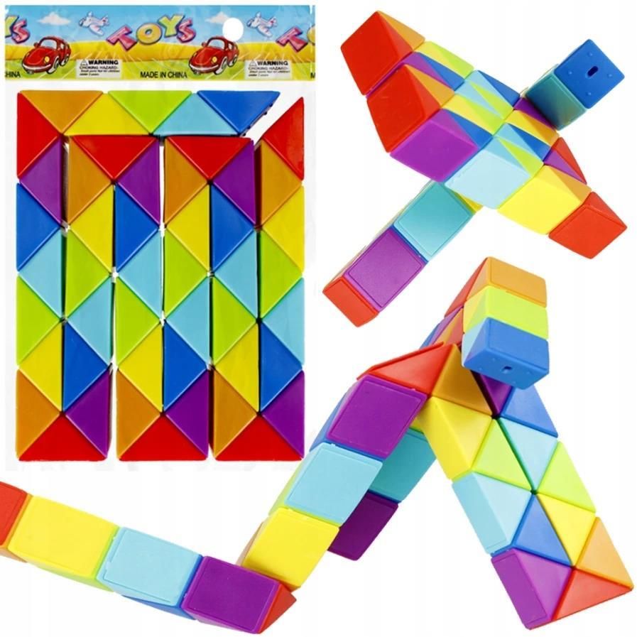 KOSTKA MAGICZNA WĄŻ KOLOROWA DO UKŁADAN RAINBOW Mega Creative Kostka Magiczna Wąż 511337 Zalety produktu: Pozwól swojemu dziecku rozwinąć zdolności ruchowo-myślowe oraz popracować nad zdolnościami manualnymi i wyobraźnią. Magiczna Kostka Wąż MEGA CREATIVE zapewni każdemu ochotnikowi nie lada gratkę podczas próby jej ułożenia! Kostka zbudowana z kilkudziesięciu kostek w kształcie trójkątów i prostokątów, które po rozłożeniu przypominają Węża. Można je w dowolny sposób przekładać i składać, tworząc nowe figury. Zabawka wykonana z plastiku. x wys. x gł.) [cm]: 13x12x2, wymiary produktu (dł. x wys. x gł.) [cm]7x9x2, Waga opakowania (kg.) 0,04kg, waga produktu (kg.) 0,04kg. Pakowana w woreczek foliowy. Produkt przeznaczony dla dzieci w wieku: 3+.