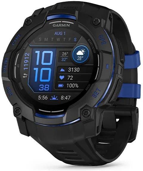 Garmin Instinct 3 50 mm AMOLED Black z paskiem w kolorze Black/Bolt Blue o kodzie producenta 010-03020-03 to nowa odsłona kultowego zegarka outdoorowego, która łączy legendarną trwałość serii Instinct z nowoczesnym, kolorowym ekranem AMOLED o wysokiej rozdzielczości, zapewniającym niespotykaną dotąd czytelność i wyrazistość – nawet w pełnym słońcu. Wzmocniona konstrukcja z materiałów spełniających standard MIL-STD-810 gwarantuje odporność na wstrząsy, wodę (10 ATM) oraz skrajne temperatury. Zegarek oferuje do 30 dni pracy w trybie smartwatcha, dzięki czemu możemy zapomnieć o ładowaniu przy dłuższych wyprawach. Technologia AMOLED połączone z funkcjonalnością terenową Instinct 3 AMOLED oferuje kompleksowe wsparcie dla użytkowników uprawiających sporty terenowe, miejskie i siłowe. Zegarek wyposażono w pełnokolorowe mapy z obsługą planowania tras i punktów POI, a także tryb mapy SkiView™ oraz Courses dla tras rowerowych i biegowych. Nowoczesny ekran pozwala na szczegółową prezentację danych nawigacyjnych, treningowych i zdrowotnych w czasie rzeczywistym. Dzięki systemom GPS, GLONASS i Galileo, a także automatycznemu wyznaczaniu trasy powrotnej (TrackBack), zatem urządzenie zapewnia nam precyzję w każdym terenie. Zaawansowane funkcje zdrowotne, sportowe i codzienne Smartwatch outdorowy oferuje rozbudowany zestaw funkcji zdrowotnych i treningowych, które sprawiają, że zegarek doskonale sprawdza się zarówno na co dzień, jak i podczas intensywnych aktywności. Funkcja Health Snapshot™ umożliwia szybkie zebranie kluczowych danych zdrowotnych, takich jak tętno, poziom stresu, oddech czy saturacja krwi (SpO2), natomiast poranny raport (Morning Report) prezentuje podsumowanie snu, regeneracji oraz prognozę pogody, ułatwiając planowanie dnia. Zaawansowane monitorowanie snu z funkcją Sleep Score pozwala ocenić jego jakość na podstawie faz i czasu snu. Dodatkowo, zegarek oferuje adaptacyjne sugestie treningowe, które dostosowują się do aktualnej formy użytkownika, oraz funkcję Real-Time Stamina, monitorującą poziom energii w czasie rzeczywistym podczas wysiłku. Co więcej, dzięki smart powiadomieniom, kalendarzowi i obsłudze płatności Garmin Pay™, Instinct 3 AMOLED spełnia oczekiwania także w codziennym użytkowaniu, a wersje z opcją muzyki umożliwiają słuchanie utworów z serwisów takich jak Spotify, Deezer czy Amazon Music – bez potrzeby korzystania z telefonu. Garmin Instinct 3 50 mm AMOLED to nowoczesny zegarek dla tych, którzy oczekują maksymalnej wytrzymałości, wyjątkowej czytelności i funkcji znanych z topowych smartwatchy, ale w outdoorowym wydaniu. To najlepszy wybór dla użytkowników poszukujących połączenia nowej technologii z praktycznym podejściem do treningu, zdrowia i życia codziennego. Zegarek Garmin Instinct 3 AMOLED to: Wzmocniony metalem bezel Jasny i pełen żywych kolorów wyświetlacz AMOLED Całodobowe monitorowanie zdrowia i samopoczucia Wbudowana latarka Wielopasmowy moduł GPS z technologią SatIQ™ KIERUJ SIĘ INSTYNKTEM Instinct 3 to wytrzymały smartwatch GPS, który został zaprojektowany z myślą o sprostaniu każdemu wyzwaniu. Podążaj za swoim instynktem, niezależnie od tego, gdzie zaprowadzi Cię przygoda. JASNY, 1,3-CALOWY WYŚWIETLACZ AMOLED NAWET 24 DNI PRACY BATERII W TRYBIE ZEGARKA SZCZEGÓŁOWE FUNKCJE MONITOROWANIA ZDROWIA I SAMOPOCZUCIA POWIADOMIENIA Z TELEFONU1 WBUDOWANA LATARKA WYTRZYMAŁA KONSTRUKCJA POKOCHASZ TE FUNKCJE Wyświetlacz AMOLED Wyróżnij się, dzięki żywemu 1,3-calowemu wyświetlaczowi AMOLED oraz kopercie 50 mm. WYTRZYMAŁA KONSTRUKCJA Podróżuj pewnie, dzięki wytrzymałej konstrukcji, wyróżniającej się bezelem z metalowym wzmocnieniem oraz odpornym na zarysowania wyświetlaczem. WBUDOWANA LATARKA Zapewnij widoczność — sobie i siebie — dzięki wbudowanej latarce ze zmienną intensywnością świecenia oraz czerwonym światłem. Całodobowe monitorowanie zdrowia i samopoczucia Zyskaj pewność w tym co robisz, z pomocą funkcji monitorowania zdrowia, takich jak tętno, zaawansowane monitorowanie snu, pulsoksymetr2 i wielu innym. POWIADOMIENIA Z TELEFONU Wiadomości e-mail, SMS-y i alerty możesz odczytywać na zegarku sparowanym z kompatybilnym smartfonem Apple® lub Android™. CZAS DZIAŁANIA BATERII Zostaw ładowarkę w domu – bateria zegarka działa nawet do 24 dni. ZDROWIE I KONDYCJA RUCH NA CO DZIEŃ Miej oko na liczbę wykonywanych kroków w ciągu doby, spalone kalorie, liczbę pokonanych pięter i inne informacje — sprawdzaj je na zegarku3. STATUS ZMIENNOŚCI TĘTNA Uzyskaj głębsze zrozumienie ogólnego stanu zdrowia, dzięki zmienności tętna podczas snu. POMIAR TĘTNA NA NADGARSTKU Instinct 3 monitoruje tętno, dzięki czemu najnowsze informacje na temat pracy serca masz jak na dłoni — przez cały dzień i całą noc3. POMIAR STRESU Sprawdź czy Twój dzień jest spokojny, zrównoważony, czy stresujący. PORANNY RAPORT Otrzymuj przegląd m.in. swojego snu, odpoczynku oraz informacje dotyczące kalendarza dziennego i statusu zmienności tętna — natychmiast po przebudzeniu. Raport można także dostosować do własnych potrzeb, aby pokazywał to, co chcesz zobaczyć. ZESTAWIENIE DANYCH NA TEMAT ZDROWIA Zapisz dwuminutową sesję, aby zarejestrować kluczowe statystyki, a następnie wygeneruj raport, w celu udostępnienia go swojemu lekarzowi. Pulsoksymetr Monitoruj natlenienie krwi po przebudzeniu lub podczas snu2. ŚWIADOME ODDYCHANIE Rozpocznij wykonywanie ćwiczeń oddechowych, aby monitorować poziom stresu i oddech. ODDECH Zobacz, jak oddychasz w trakcie dnia i nocy. NAWODNIENIE Rejestruj dzienne spożycie płynów, jako przypomnienie o nawadnianiu organizmu. WIEK SPRAWNOŚCIOWY Oszacuj stan swojej kondycji względem wieku. WYKRYWANIE DRZEMEK Automatycznie monitoruj lub rejestruj drzemki, aby zobaczyć, jakie korzyści przynoszą one Twojemu organizmowi oraz jaki powinien być ich idealn