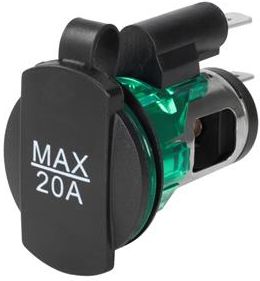 Gniazdo elektryczne EURO 12V 24V 20A maxNadaje się do wszystkich pojazdów z zasilaniem prądem stałym 12V.Użytkowanie: 1. Wykonaj otwór o średnicy 26 mm.2. Umieść w nim gniazdo.3. Przykręć gniazdo za pomocą 2 wkrętów.4. Podłącz czerwony przewód do bieguna dodatniego (+).5. Podłącz czarny przewód do bieguna ujemnego (-) gniazda.6. Użyj wsuwek o szerokości 6,3 mm do podłączenia przewodów.7. Wskazane jest, aby podłączyć gniazdo poprzez bezpiecznik 15A.Ważne! 1. Upewnij się, że zasilanie jest wyłączone przed rozpoczęciem instalacji, aby uniknąć ryzyka porażenia prądem elektrycznym.2. Podłączając przewody, upewnij się, że czerwony przewód jest łączony z biegunem dodatnim (+), a czarny przewód z biegunem ujemnym (-), aby zapewnić prawidłową polaryzację.3. Nie przekraczaj dopuszczalnych wartości elektrycznych, ponieważ może to spowodować przegrzanie i uszkodzenie gniazda oraz innych elementów układu elektrycznego.Specyfikacja techniczna: 12/24V max 240W/20AZIELONE PODŚWIETLENIETYP EURO