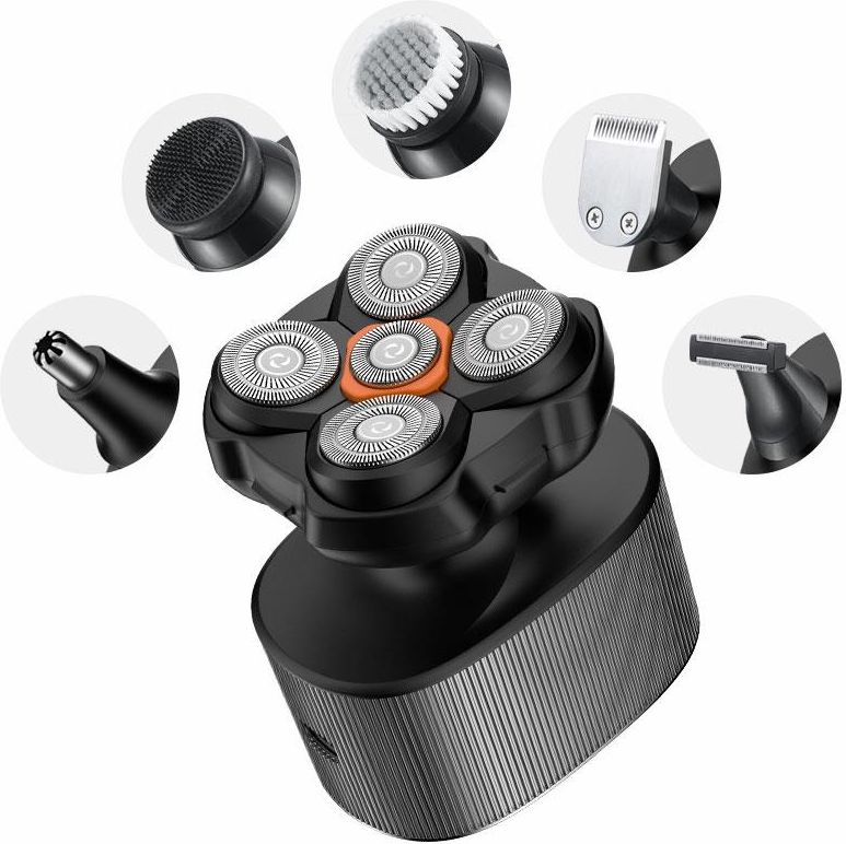 Golarka elektryczna do głowy, zarostu bezprzewodowa IPX6 6 ostrzy Poznaj urządzenie, które odmieni Twój codzienny rytuał pielęgnacji. Głowica z pięcioma elastycznymi głowicami 360° zapewnia niezwykle dokładne i komfortowe golenie – bez podrażnień i zbędnego wysiłku. Idealnie dopasowuje się do kształtu twarzy i głowy, gwarantując gładkość w każdym miejscu.Dzięki pięciu wymiennym końcówkom urządzenie staje się wielofunkcyjnym centrum pielęgnacji. Trymer do brody pozwala na precyzyjne modelowanie zarostu, trymer do nosa i uszu skutecznie usuwa zbędne włosy, szczoteczka oczyszczająca poprawia kondycję skóry, a nasadka do masażu twarzy relaksuje i wspiera mikrokrążenie, głowica z pięcioma ostrzami do golenia głowy, trymer do włosów. To kompleksowe rozwiązanie, które zastępuje kilka oddzielnych urządzeń.Bezprzewodowa praca do 90 minut na jednym ładowaniu daje swobodę i mobilność – możesz zadbać o siebie w domu, w podróży czy tuż przed ważnym spotkaniem. Brak przewodów oznacza pełną wygodę i niezależność.Z myślą o codziennych wyzwaniach urządzenie zostało zaprojektowane tak, by rozwiązywać najczęstsze problemy mężczyzn – od nierównego zarostu, przez trudne do ogolenia miejsca, po szybkie i bezbolesne usuwanie włosów z nosa czy uszu. To wszystko w jednym kompaktowym, eleganckim narzędziu.Postaw na wygodę, dokładność i pewność siebie. Wybierz golarkę, która sprosta Twoim oczekiwaniom i pozwoli Ci czuć się doskonale w każdej sytuacji. Dlaczego warto wybrać Golarkę LK-5288 Główna głowica, 5 ostrzy 5D ze stali nierdzewnej – wyjątkowa precyzja i gładkość golenia bez podrażnień.⭐ Elastyczne głowice 360° – dopasowują się do kształtu twarzy i głowy, zapewniając równomierne cięcie nawet w trudno dostępnych miejscach.⭐ 6 w 1 – kompleksowa pielęgnacja – trymer do brody, trymer do nosa i uszu, szczoteczka do oczyszczania twarzy, nasadka do masażu, głowica goląca z 5 ostrzami rotacyjnymi 360°, trymer z nasadkami dystansowymi.⭐ 90 minut pracy na jednym ładowaniu – pełna swoboda i mobilność bez konieczności częstego podłączania do zasilania.⭐ Pojemna bateria 600 mAh oraz moc 5W – optymalne połączenie wydajności i energooszczędności.⭐ Nowoczesne ładowanie USB-C – szybkie, wygodne i kompatybilne z większością ładowarek.⭐ Wodoodporność IPX6 – bezpieczne użytkowanie i łatwe czyszczenie pod bieżącą wodą.⭐ Wyświetlacz – bieżący podgląd poziomu naładowania, aby zawsze być przygotowanym na golenie Precyzyjne cięcie w każdym ruchu Golarka LK-5288 wyposażona została w 5 ruchomych ostrzy 360°, które inteligentnie dopasowują się do kształtu twarzy i głowy.Dzięki temu golenie jest niezwykle dokładne, szybkie i komfortowe – bez zbędnych podrażnień. Ostrza ze stali nierdzewnej gwarantują trwałość oraz gładkość nawet w najtrudniej dostępnych miejscach, pozwalając cieszyć się perfekcyjnym efektem każdego dnia. Funkcjonalność na wyciągnięcie ręki Dzięki wymiennym głowicom urządzenie staje się kompletnym zestawem do pielęgnacji, który sprosta wszystkim potrzebom mężczyzny: Trymer do brody – umożliwia precyzyjne podcinanie, modelowanie i tworzenie idealnych linii. Końcówka do nosa i uszu – pozwala szybko i komfortowo usunąć zbędne owłosienie z trudnych miejsc. Szczoteczka klasyczna do twarzy – głęboko oczyszcza skórę z zanieczyszczeń i resztek sebum. Szczoteczka silikonowa – delikatnie masuje i poprawia mikrokrążenie, doskonała dla skóry wrażliwej. Nasadka masująca – koi cerę po goleniu, relaksuje mięśnie i poprawia kondycję skóry. Trymer do włosów + Nasadki dystansowe (3 mm, 5 mm, 7 mm) – dają pełną kontrolę nad długością włosów i brody, pozwalając dopasować styl do okazji. Głowica z pięcioma elastycznymi głowicami 360° - idealna do precyzyjnego golenia głowy Wszystko, czego potrzebujesz w jednym urządzeniu Golarka LK-5288 to nie tylko narzędzie do golenia – to kompletny zestaw pielęgnacyjny 6 w 1, który zastępuje kilka urządzeń.Dzięki temu oszczędzasz czas, miejsce i pieniądze, mając pod ręką rozwiązanie na każdą sytuację: od codziennego golenia, przez stylizację fryzury, po pielęgnację skóry twarzy.To wszechstronność zamknięta w eleganckiej i kompaktowej formie. Niezawodna w każdych warunkach Urządzenie zostało stworzone z myślą o wygodzie i higienie. Dzięki wodoodporności IPX6 możesz używać golarki nie tylko na sucho, ale także pod prysznicem.Po skończonym goleniu wystarczy przepłukać głowice pod bieżącą wodą, aby były gotowe do następnego użycia.To praktyczne rozwiązanie, które znacząco ułatwia codzienną pielęgnację i pozwala cieszyć się czystością urządzenia bez zbędnego wysiłku. Łatwość Utrzymania Czystości dzięki Magnetycznej Głowicy Jednym z największych udogodnień tej golarki jest magnetyczny system montażu głowicy, który sprawia, że czyszczenie ostrzy są niezwykle proste. Wystarczy delikatny ruch, aby odłączyć element i dokładnie go umyć pod bieżącą wodą.Dzięki temu codzienna higiena urządzenia staje się szybka i intuicyjna, a sama golarka zachowuje pełną wydajność na dłużej. To rozwiązanie, które doceni każdy, kto ceni sobie wygodę i niezawodność w codziennym użytkowaniu. Specyfikacja Golarki LK-5288 Parametry techniczne: Ostrza: 5D ze stali nierdzewnej Głowice: elastyczne, obracające się o 360° Akumulator: Li-ion 600 mAh Napięcie znamionowe: DC 3,7 V Moc znamionowa: 5 W Czas ładowania: 2–3 godziny Czas pracy: do 90 minut bezprzewodowej pracy Ładowanie: USB-C (szybkie i wygodne) Wodoodporność: IPX6 – możliwość mycia pod bieżącą wodą Wyświetlacz LED: pokazuje poziom naładowania baterii Zawartość zestawu: Golarka LK-5288 Głowica goląca Trymer do włosów Trymer do nosa i uszu Szczoteczka do twarzy (klasyczna) Szczoteczka 