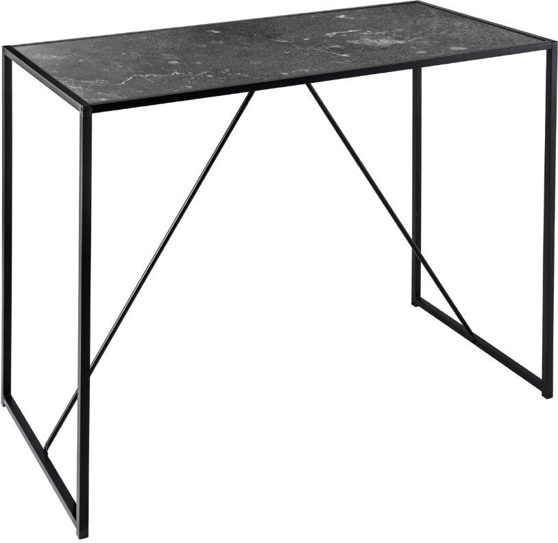 STÓŁ BAROWY SLIM LINE 120X60 CM CZARNY Ten prostokątny stół barowy to mebel który idealnie wpisze się nie tylko w industrialne, ale także minimalistyczne nowoczesne niewielkie wnętrze. Blat o grubości 1,5 cm wykonany został z płyty pilśniowej oklejonej imitacją czarnego marmuru, na której zastosowano charakterystyczną białoszarą nitkę w taki sposób, aby podkreślić jego wygląd. Stół został osadzony na czarnej stabilnej metalowej podstawie, a dzięki swojej smukłej linii całość tego stołu wspaniale komponuje się z podstawą utrzymaną w ciemnej tonacji. Poprzez swoją lekką i prosta formę prezentuje się bardzo elegancko i stylowo, dzięki czemu może mieć wiele zastosowań i służyć również jako biurko. Efekt połączenia czarnego blatu z czarną metalową minimalistyczną podstawą jest jednolity, przez co również znajdzie swoje zastosowanie miedzy innymi w stylu industrialnym oraz nowoczesnym. W serii SLIM LINE występują również regały, szafki RTV oraz nocne, komody, biurka, konsole, wózki do serwowania, stoły oraz stoliki o różnych wymiarach i kolorach - patrz produkty powiązane Invicta Interior to niezawodny dostawca ekskluzywnych designerskich mebli i akcesoriów domowych. Jest to dynamiczna i doświadczona firma z wieloletnimi międzynarodowymi kontaktami i stale poszukującą nowych produktów i innowacyjnych pomysłów. Dojrzała ogólna koncepcja firmy pozwala zaoferować klientom duży wybór nowoczesnych i klasycznych mebli o wyjątkowej jakości w rozsądnych cenach. Invicta Interior monitoruje wszystkie aktualne trendy w branży meblowej, dlatego klienci zawsze otrzymują najnowsze i najwyższej jakości designerskie meble.