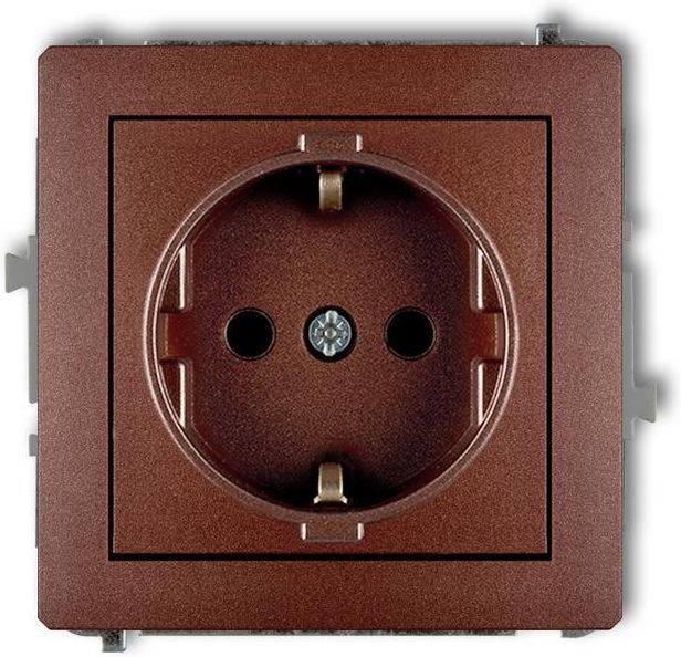 Karlik Deco Brązowy Metalik Mechanizm Gniazda Pojedynczego Z Uziemieniem Schuko 2P+Z Kategoria: gniazda pojedyncze Kolor: brązowy metalik Parametry: IP 20, 16A 250V~ Waga (kg): 0,079 Wysokość: 90,2 mm Szerokość: 90,2 mm Głębokość: 41,7 mm Rodzaj produktu: Mechanizm gniazda pojedynczego z uziemieniem SCHUKO 2P+Z (przesłony torów prądowych) Opis Produktu: Karlik Deco Brązowy Metalik Mechanizm Gniazda Pojedynczego Mechanizm gniazda pojedynczego z uziemieniem SCHUKO 2P+Z w kolorze brązowym metaliku, idealnie komponuje się z nowoczesnymi oraz klasycznymi wnętrzami, zapewniając bezpieczeństwo dzięki przesłonom torów prądowych. Odporność na obciążenie do 16A i napięcie 250V~. Zalety Karlik Deco Brązowy Metalik Mechanizm Gniazda Pojedynczego Gniazdo oferuje wysoki poziom bezpieczeństwa z ochroną IP 20 i funkcją uziemienia. Stylowy design i trwała konstrukcja w kolorze brązowym metaliku zapewniają nie tylko funkcjonalność, ale również estetykę, która wzbogaca wnętrze. Praktyczne Zastosowania Karlik Deco Brązowy Metalik Mechanizm Gniazda Pojedynczego Idealny do użytku w domach, biurach oraz innych przestrzeniach, gdzie potrzebna jest niezawodna i bezpieczna instalacja elektryczna z dodatkowym uziemieniem. Dlaczego Warto Wybrać Karlik Deco Brązowy Metalik Mechanizm Gniazda Pojedynczego Gniazdo jest łatwe w montażu, pasuje do standardowych puszek montażowych używanych w Polsce, co ułatwia instalację i integrację z innymi elementami systemu elektrycznego.