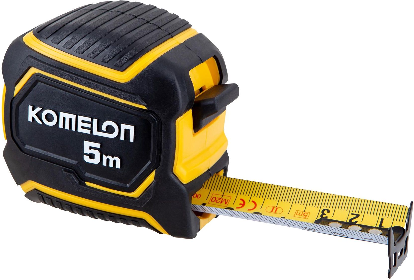 Miara 5m zwijana Komelon [PWB52]: stalowa miara o długości 5 m z dwustronnym nadrukiem skali i dwustronnym zaczepem, taśma miernicza składa się z kilku warstw: taśmy stalowej, warstwy z dobrze czytelnym nadrukiem, oraz warstwy ochronnej z nylonu, co zapewnia jej długą trwałość, dzięki specjalnemu …