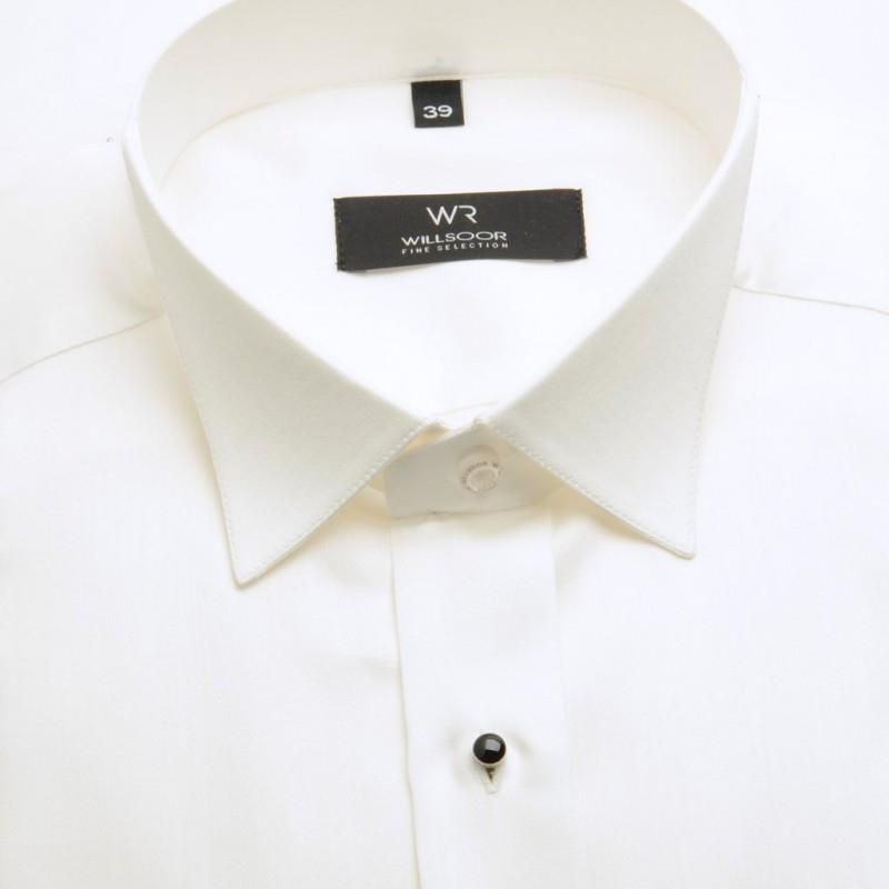 Gładka taliowana koszula smokingowa w kolorze ecru z łamanym kołnierzem