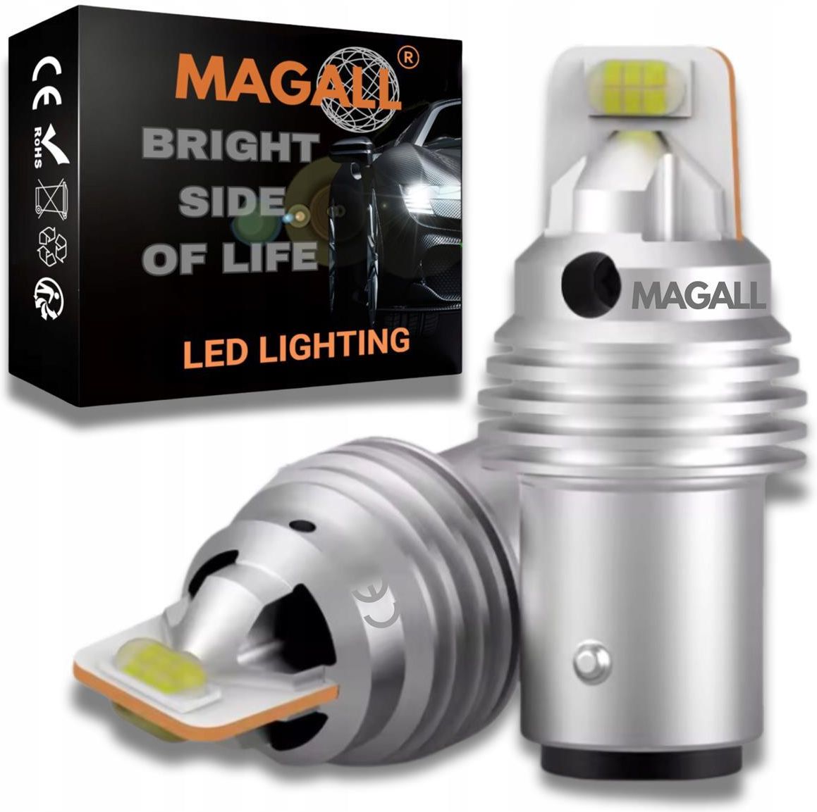 ŻARÓWKI LED P21/5W BAY15D 1157 MAGALL BIAŁE MOCNE 1600LM DRL POSTOJOWE 12V ŻARÓWKI LED P21/5W BAY15D 1157 MAGALL BIAŁE MOCNE 1600LM DRL POSTOJOWE 12V seria LONGLIFE ⭐ DZIENNE DRL ŚWIATŁA POSTOJOWE 1 DO 1 ⦁ ZESTAW 2 SZTUK ultra mocnych zamienników LED żarówek samochodowych ⦁ Doskonała jako żarówka postojowa oraz żarówka światła do jazdy dziennej ⦁ Typ trzonka: P21/5W BAY15D 1157 bolce przeciwstawne asymetryczne ⦁ Sysytem 360° ⦁ CANBUS brak ⦁ 1600LM, 10 W, Xenon White 6500K, 0,7 A, Napięcie: 12V ⦁ LED Chip: 7035 CSP LED ⦁ Szybki Montaż "PLUG AND PLAY" Parametry ⦁ Typ trzonka: P21/5W/BAY15D/1157 ⦁ LED Chip: 7035 CSP LED ⦁ Długość całkowita: 45mm ⦁ Szerokość: 20,5mm ⦁ 1600LM ⦁ 10W ⦁ 0,7A ⦁ Kolor: Xenon White 6500K ⦁ Napięcie: 12V Równomierna Dystrybucja Światła: Dzięki temu ustawieniu chipów LED światło emitowane przez żarówkę jest rozprowadzane równomiernie wokół całej osi żarówki, co zapewnia jednolite oświetlenie w różnych kierunkach. To pozwala na lepszą widoczność pojazdu i poprawia komfort jazdy. Lepsza Kompatybilność: Umieszczenie chipów LED w tym samym miejscu co żarnik w żarówce halogenowej zapewnia, że żarówka LED będzie miała kompatybilną geometrię z obudową reflektora pojazdu. Dzięki temu można uniknąć problemów z pasowaniem żarówek LED do istniejących systemów oświetlenia. 360-stopniowy Kąt Widzenia: Rozmieszczenie chipów LED po obu stronach żarówki zapewnia pełny kąt widzenia o 360 stopni, co oznacza, że światło jest równomiernie rozprowadzone we wszystkich. kierunkach Efektywność Świetlna: Umieszczenie chipów LED w odpowiednim miejscu pozwala uzyskać jasne i skoncentrowane światło, które jest istotne dla bezpieczeństwa jazdy. Potężne Światło: Nasze żarówki LED o jasności 1600LM i mocy 10W zapewniają odpowiednie oświetlenie, które zwiększa widoczność i bezpieczeństwo podczas jazdy. Doskonała Wydajność Rozpraszania Ciepła: Korpus z aluminium lotniczego 6063 zapewnia doskonałą wydajność rozpraszania ciepła, co pozwala na utrzymanie niższej temperatury pracy żarówki, jednocześnie zwiększając jej jasność i trwałość. Zastosowanie Światło do Jazdy Dziennej DRL: Używaj ich jako świateł do jazdy dziennej, zwiększając swoją widoczność na drodze i poprawiając bezpieczeństwo, zwłaszcza w trudnych warunkach pogodowych. Światła postojowe Żarówki LED MAGALL są zgodne z dyrektywą EMC 2014/30/UE oraz przeszły testy EN IEC 55015:2019+A11:2020. Dzięki spełnieniu wymogów dyrektywy EMC, żarówki MAGALL są zaprojektowane tak, by nie zakłócały pracy innych urządzeń elektrycznych, a także są odporne na zewnętrzne zakłócenia elektromagnetyczne. Oznacza to stabilne i bezproblemowe działanie przez cały okres użytkowania, co wpływa na wygodę, bezpieczeństwo oraz komfort w codziennym korzystaniu z oświetlenia LED MAGALL. Żarówki LED marki MAGALL posiadają oznaczenie CE i spełniają wymagania Unii Europejskiej dotyczące bezpieczeństwa, zdrowia i ochrony środowiska. CE świadczy o tym, że produkty zostały przebadane pod kątem bezpieczeństwa użytkowania oraz że spełniają rygorystyczne normy jakościowe i techniczne wymagane w UE. Czy żarówki LED posiadają homologację? Cały dostępny na rynku asortyment źródeł światła LED został stworzony z myślą o reflektorach, które spełniają standardy związane z żarówkami halogenowymi lub konwencjonalnymi. W ramach Unii Europejskiej nie ustalono jeszcze kompleksowych przepisów, które byłyby niezbędne do legalizacji źródeł światła LED na rynku. Prezentowanie informacji w ofertach handlowych przez niektórych sprzedawców, które sugerują, że żarówki LED posiadają homologację, jest działaniem mającym na celu wprowadzenie w błąd i w rezultacie skłonić klienta do zakupu. Co poniektórzy dodatkowo umieszczają na produkcie oznaczenie E… co ma za zadanie utwierdzić w tym przekonaniu. My nie stosujemy takich praktyk. W Unii Europejskiej produkty motoryzacyjne muszą posiadać certyfikat UNECE, który uprawnia je do użytku na drogach publicznych. Dotychczasowe certyfikaty ECE dotyczą jedynie żarówek halogenowych, ksenonowych i źródeł światła LED montowanych fabrycznie w nowych pojazdach. Niemniej jednak nie istnieją konkretne wymagania homologacyjne ani ograniczenia dotyczące używania źródeł światła LED na prywatnych drogach, torach wyścigowych itp... Dlatego wiodący producenci oświetlenia LED do samochodu zawierają na swoich produktach informację ,,only off road” lub ,,do użytku poza drogą publiczną” Choć przepisy prawne nie uległy zmianie, uważamy, że nasi klienci obecnie dysponują wystarczającą wiedzą na temat źródeł światła LED aby dokonać świadomego wyboru i satysfakcjonującego zakupu. Wszystkie nasze produkty są zgodne z dyrektywą EMC 2014/30/EU - CE testowane są zgodnie ze standardami EN IEC 55015:2019+A11:2020, EN 61547:2009