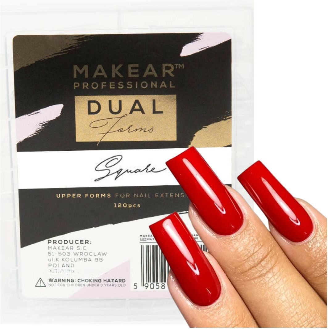 Makear Dual Forms Kwadrat - Formy Górne Kształt Kwadrat 120 Szt. Silikonowe formy Dual służące do techniki przedłużania oraz utwardzania naturalnych paznokci przy użyciu akrylożelu, akrylu oraz żeli. Te formy są nieodzownym narzędziem dla każdego stylisty paznokci, który pragnie osiągnąć …