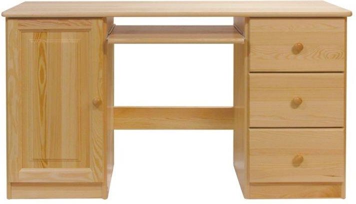 Biurko CD3 . Wykonane w całości z drewna sosnowego, plecy z płyty pilśniowej . Prowadnice rolkowe. 3 pakowne szuflady. 1 półeczka zamykana. Biurko jest lakierowana lakierem bezbarwnym metodą natryskową. Mebel wysyłany w paczce do samodzielnego montażu wraz z instrukcją oraz akcesoriami . Wymiary biurka : Szerokość 136 cm wysokość 75 cm głębokość 48 cm