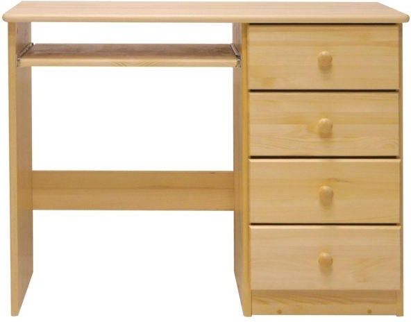 Biurko CM3 prawe. Wykonane w całości z drewna sosnowego, plecy z płyty pilśniowej . Prowadnice rolkowe. 4 pakowne szuflady. Biurko jest lakierowana lakierem bezbarwnym metodą natryskową. Mebel wysyłany w paczce do samodzielnego montażu wraz z instrukcją oraz akcesoriami . Wymiary biurka : Szerokość 100 cm wysokość 75 cm głębokość 48 cm