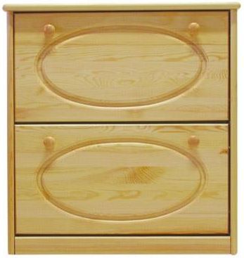 Szafka na buty model II elipsa. Wykonana w całości z drewna sosnowego. Prosta stabilna konstrukcja. Szafka jest lakierowana, w opcji koloru jest bejcowana na kolor następnie lakierowana lakierem bezbarwnym metodą natryskową. Wymiary szafki : szerokość 80 cm głębokość 28 cm wysokość 73 cm gr.materiału 2 cm