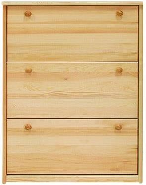 Szafka na buty model III szeroka C81. Wykonana w całości z drewna sosnowego. Prosta stabilna konstrukcja. Szafka jest lakierowana, w opcji koloru jest bejcowana na kolor następnie lakierowana lakierem bezbarwnym metodą natryskową. Wymiary szafki : szerokość 72cm głębokość 29 cm wysokość 115 cm gr.materiału 2 cm