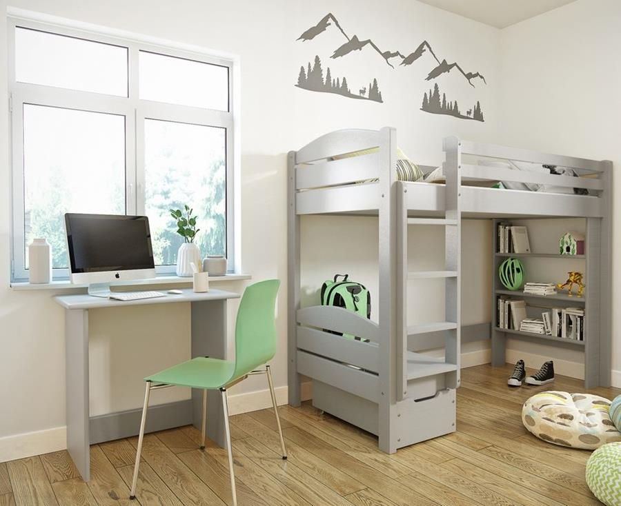 ZESTAW DARIA 90X200 ŚWIERK SZARY Jest jedyny w swoim rodzaju,zawiera w sobie biurko, regał i szufladę. Dzięki temu zyskujemy więcej przestrzeni do zagospodarowania w pokoju nie rezygnując z bezpieczeństwa i wygody. Zalety: Całość wykonana z litego drewna świerkowego Łóżko na antresoli W zestawie: biurko, regał oraz szuflada Regał można zamocować z lewej lub z prawej strony Biurko nie jest przytwierdzone do łóżka, dzięki czemu jego usytuowanie zależy od własnych preferencji Siedzisko nad szufladą Barierki zabezpieczające o wys. 15 cm (z tyłu i z przodu) Zaokrąglone krawędzie chroniące przed urazami Solidna i trwała konstrukcja łóżka Wytrzymała drabinka Masywne nogi – 4,5 x 9 cm Przekrój desek – 14 x 2,8 cm Łóżko dwukrotnie zabezpieczone lakierem wodnym spełniającym certyfikat PN-EN 71 Wykonane ręcznie z drewna świerkowego, skręcane solidnie za pomocą śrub mosiężnych oraz kołków drewnianych Szuflada na kółkach całkowicie wysuwane spod łóżka Łatwy montaż i czytelna instrukcja W skład łóżka wchodzą: Konstrukcja z litego drewna świerkowego z barierkami zabezpieczającymi Biurko Regał Drabinka Szuflada na kółkach Stelaż listwowy pod materac (grubość 2cm) Gwarancja 24 miesiące Instrukcja Komplet śrub, kołków oraz kluczy Powierzchnia do spania: 90x200 cm Wymiary zewnętrzne bez regału : 104 x209 cm Wymiary zewnętrzne z regałem: 104x223 cm Wysokość szczytów: 170 cm Wysokość ramy górnej łóżka bez zabezpieczenia : 138 cm Szerokość wejścia: 33 cm Przestrzeń wewnętrzna pod łóżkiem : 90x200x124 cm Głębokość szuflady: 18 cm Długość wewn. szuflady: 78 cm Szerokość wewn. szuflady: 35 cm Wymiary zewnętrzne biurka: Wyskokość 80 cm Szerokość 80 cm Głębokość 53 cm Wymiary zewnętrzne regału: Wyskokość 138 cm Szerokość 100 cm Głębokość 14 cm Dodatkowe informacje: Głębokość w ramie łóżka pod stelaż i materac wynosi 11 cm Wysokość ramy górnej łóżka bez zabezpieczenia, mierzona od podłogi wynosi 138 cm Wysokość barierki zabezpieczającej od ramy łóżka wynosi 15 cm