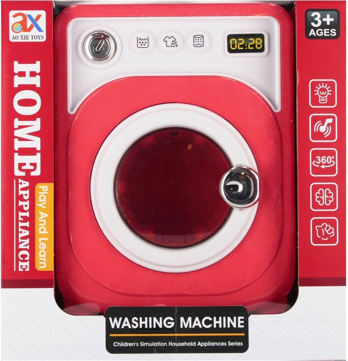 Mega Creative Pralka 547713 Najwyższy czas aby zrobić pranie. Pozwól dziecku na wykonanie tej czynności domowej własnoręcznie we własnej pralce MEGA CREATIVE. Zalety produktu: pralka posiada efekty dźwiękowe oraz świetlne, bęben pralki po włączeniu obraca się, posiada funkcje prania, płukania oraz wirowania, po skończonym praniu można je wyciągnąć ze środka, pralka w kolorze różowo-białym. Produkt ten idealnie odzwierciedla prawdziwy sprzęt domowy! Zawartość zestawu: pralka funkcyjna. Produkt wykonany z plastiku. wymiary produktu - 14x18x8 cm waga produktu bez opakowania - 0,24 kg waga produktu w opakowaniu - 0,37 kg Wymaga zasilania bateriami 2 x AA LR06- nie załączono do zestawu. Zabawka przeznaczona dla dzieci w wieku: 3+.