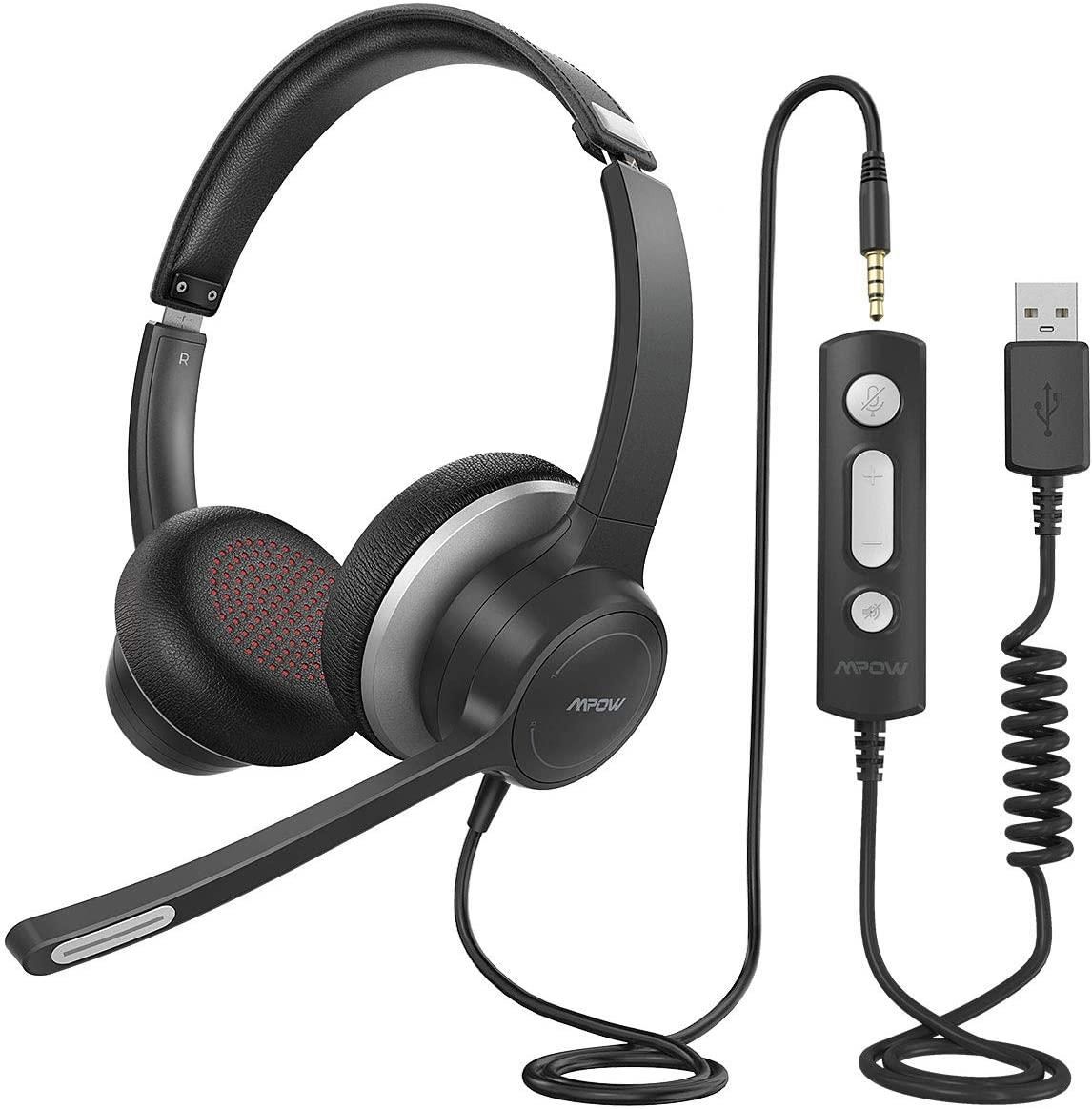 MPOW HC6 USB-A/3.5mm Przewodowy zestaw nagłowny na dwoje uszuWyjątkowe audio dla wyraźnych połączeń Zestaw słuchawkowy USB Mpow HC6 został zaprojektowany z kartą dźwiękową z redukcją szumów w celu zmniejszenia szumów statycznych i echa, zapewniając zoptymalizowany dźwięk podczas połączeń. …