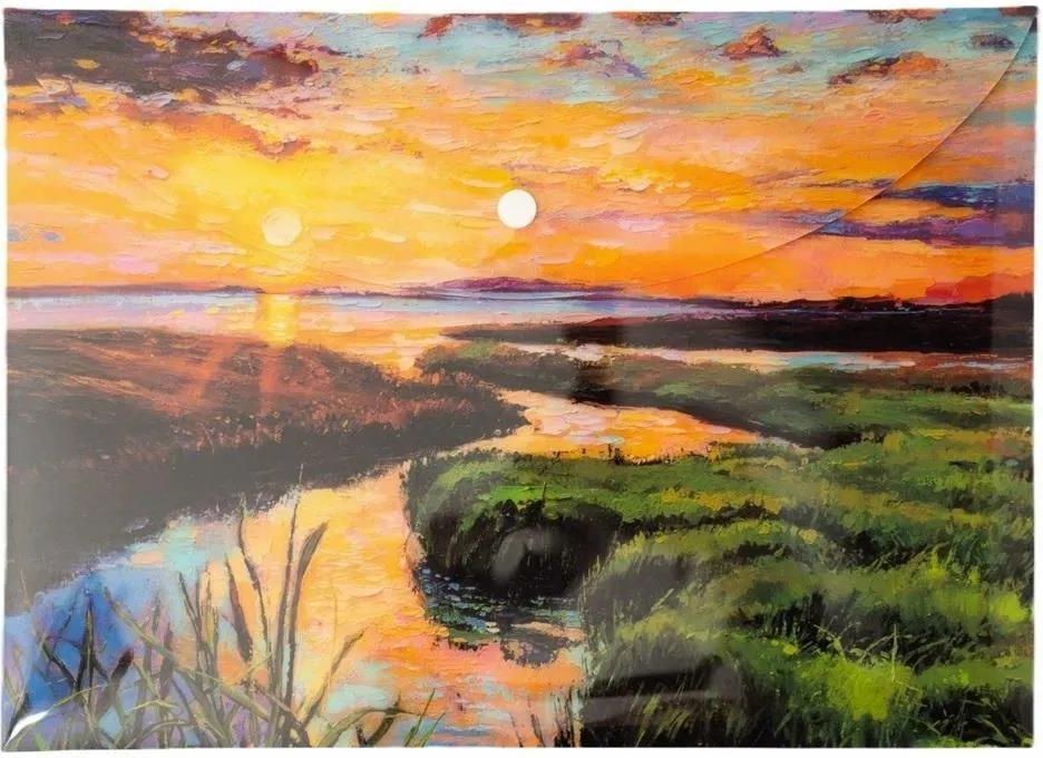 Teczka kopertowa VISTA Rzeka Narcissus, format A4 Ozdobna teczka kopertowa VISTA, wykonana z trwałego polipropylenu z nadrukiem w postaci impresjonistycznego widoku ujścia rzeki wpływającej do jeziora. Zamykana na zatrzask typu napa. Dzięki pełnemu zadrukowi, zawartość teczki pozostaje niewidoczna na zewnątrz. Idealne rozwiązanie do przechowywania dokumentów lub niewielkich płaskich przedmiotów. Specyfikacja: format A4 (320 x 230 mm) wykonana z polipropylenu zamykanie na zatrzask typu napa grubość tworzywa 28 mikronów