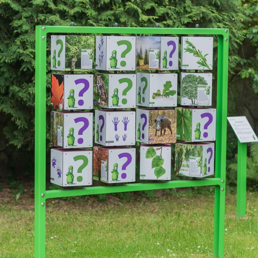 Naukowe place zabaw - Eko-memory Eko-Memory to niezwykła gra edukacyjna, która łączy klasyczną formę zabawy z inspirującą lekcją przyrody. Skierowana jest do dzieci w wieku szkolnym i opiera się na sprawdzonej formule memory, jednak nadaje jej zupełnie nowy wymiar. Zamiast szukania identycznych obrazków, gracze muszą połączyć ze sobą dwa powiązane elementy – zwierzę z jego tropem lub drzewo z charakterystycznym liściem. Gra rozwija pamięć i zdolność logicznego kojarzenia, a także wprowadza młodych uczestników w fascynujący świat leśnej przyrody. Rozgrywka odbywa się na specjalnie zaprojektowanych, obrotowych tabliczkach, które kryją w sobie ilustracje oraz interesujące ciekawostki. Dzięki temu dzieci mogą dowiedzieć się, jak wygląda trop dzika, jaki liść należy do dębu, czy czym różni się buk od grabu. Wiedza zdobywana podczas zabawy przyswajana jest naturalnie i bez wysiłku, co czyni tę grę doskonałym narzędziem edukacyjnym – szczególnie w dobie cyfrowych rozpraszaczy. Największą zaletą Eko-Memory jest jej wielowarstwowe oddziaływanie na rozwój dziecka. Ćwiczenie pamięci, koncentracji i wytrwałości to tylko początek. Gra wspiera także rozwój motoryki małej, uczy cierpliwości oraz wzmacnia umiejętność kojarzenia i analizowania informacji. To nieoceniona pomoc szczególnie dla dzieci, które mają trudności z utrzymaniem uwagi – atrakcyjna forma zabawy na świeżym powietrzu sprzyja skupieniu i zaangażowaniu. Eko-Memory to również świetna okazja do wspólnego spędzania czasu – zarówno w gronie rodzinnym, jak i w szkolnych lub przedszkolnych grupach. Gra zachęca do współpracy, rozmowy i dzielenia się spostrzeżeniami. Dzięki prostej mechanice i przystępnym zasadom mogą w nią grać dzieci w różnym wieku, a nawet dziadkowie – wspólna zabawa staje się więc mostem międzypokoleniowym. Unikalna konstrukcja gry – obrotowe kostki ustawione w przestrzeni – sprawia, że gra doskonale nadaje się do wykorzystania w ogrodzie, parku czy na leśnej ścieżce edukacyjnej. Taka forma nauki przez zabawę daje dzieciom satysfakcję, uczy samodzielnego odkrywania i zachęca do dalszego poznawania świata. Podana cena dotyczy produktu bez montażu. Wersja z montażem jest wyceniana indywidualnie – zapytania w tej sprawie prosimy kierować na nasz adres mailowy. [ikony-produktu-opisy] Co zawiera? Naukowe place zabaw - Eko-memory Główne informacje Producent: Naukowe Place Zabaw Wymiary: 145 x 20 cm Wysokość: 175 cm Wymiary Strefy bezpieczeństwa: 3,2 x 4,45 m Wiek: 5+ Produkt zgodny z EN 1176-1:2017 Pomysły na zabawę Memory z wyzwaniami – utrwalenie wiadomości na temat drzew i zwierząt Każdy gracz po odnalezieniu pary (np. trop i zwierzę) musi odpowiedzieć na pytanie dotyczące danego elementu – np. „Co je to zwierzę?”, „Gdzie żyje?”, „Czy widziałeś je kiedyś w lesie?”. Starsze dzieci mogą korzystać z ciekawostek umieszczonych na tabliczkach jako podpowiedzi. Taka zabawa rozwija pamięć i utrwala wiedzę przyrodniczą. Odkrywca lasu – gromadzenie wiadomości na temat roślin i zwierząt, rozwój komunikacji Po każdej znalezionej parze gracz odgrywa rolę „eksperta” – krótko opowiada innym, czego się dowiedział na temat tego drzewa lub zwierzęcia (na podstawie ilustracji lub ciekawostki z kostki). Pozostali mogą zadawać pytania. Zabawa rozwija umiejętność wypowiadania się i zapamiętywania szczegółów. Tropy i liście – gromadzenie wiadomości na temat roślin i zwierząt, rozwój percepcji wzrokowej Nauczyciel opisuje ustnie jakiś liść lub trop, a dzieci próbują znaleźć odpowiednią parę na tablicy. Na przykład: „Szukamy liścia o gładkich krawędziach, przypominającego serce” – dzieci próbują dopasować do niego odpowiednie drzewo. Instrukcja Procedura montażu