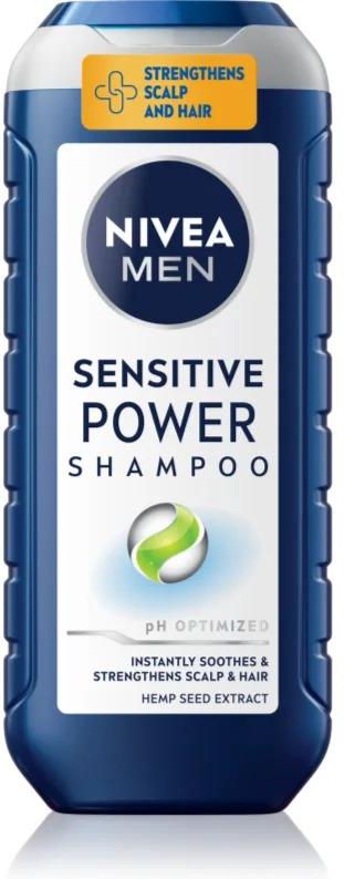 NIVEA MEN Sensitive Power, 250 ml, Szampony dla mężczyzn, Właściwości: myje włosy i oczyszcza skórę głowy intensywnie nawilża łagodzi podrażnioną skórę głowy wzmacnia włókna włosów preparat jest specjalnie opracowany na potrzeby mężczyzn Sposób użycia: Nanieś odpowiednią ilość szamponu na mokre włosy. Spień i potem dokładnie spłucz.