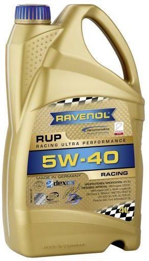 Ravenol RUP 5W40 jest innowacyjnym, w pełni syntetycznym, wielosezonowym olejem silnikowym optymalizującym zużycie paliwa. Przeznaczony jest głównie do stosowania w nowoczesnych silnikach benzynowych samochodów wyścigowych, gwarantując bezpieczeństwo nawet przy najbardziej ekstremalnych obciążeniach. Ze względu na specjalną mieszaninę wysoko polarnych olejów bazowych grupy V z dużą ilością baz PAO o wysokiej rozpiętości lepkości można było zrezygnować z dodatków polepszających wskaźnik lepkości. Wysoka wartość HTHS i wysoki wskaźnik lepkości oraz wynikająca z tego znakomita odporność na ścinanie, a także specjalne dodatki uszlachetniające w postaci molibdenu i wolframu sprawiają, że nadaje się również do sportowego stylu jazdy. Dzięki jedynej w swojej rodzaju formulacji, olej zapewnia bezpieczną warstwę smarną przy bardzo wysokich temperaturach roboczych, brak pienienia oraz znakomitą ochronę przeciwkorozyjną (odporność na utlenianie). Specyfikacje: API SN VW 502 00, VW 505 00, VW 505 01 Renault RN0700/RN0710 GM Dexos 2 (Lizencja Nr. D20583HI081) MB-Aprobata 229.51, MB-Aprobata 226.5 BMW Longlife-04 Porsche A40 Ford WSS-M2C917-A Partner Wyścigów: Nürburgring Tested, Hockenheim Premium Partner, Polecany przez Ralfa Schumacher’a