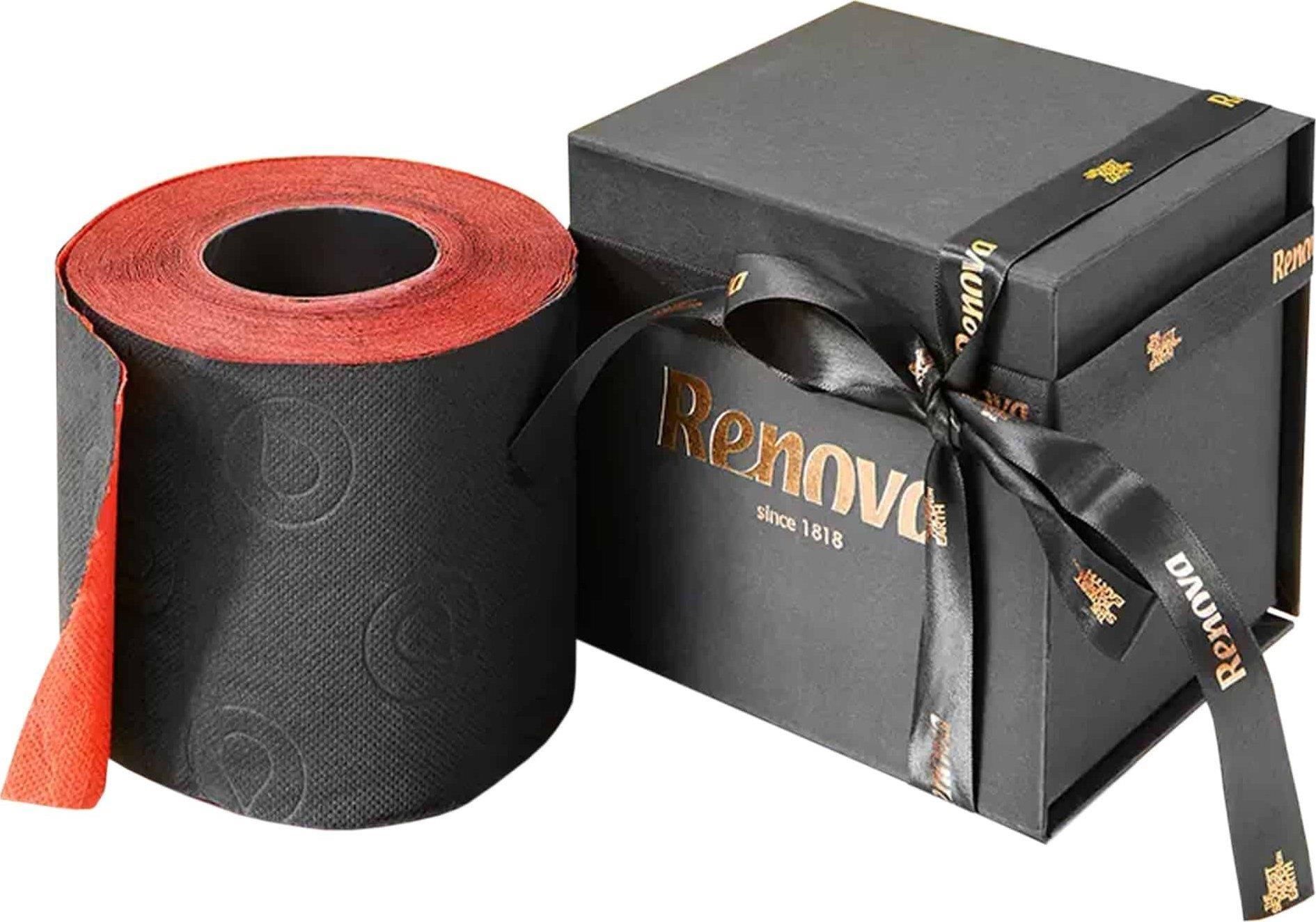 Papier toaletowy RENOVA Rouge & Noire 1 rolka Szukasz idealnego luksusowego i oryginalnego prezentu, który rozpieści Twoich kolegów, pracowników, przyjaciół lub rodzinę? Ten limitowany papier toaletowy Rouge & Noire Gift Box na zawsze zmieni sposób, w jaki patrzysz na rolkę papieru …