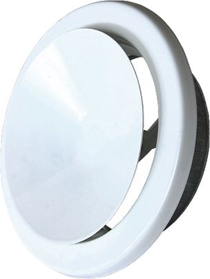 Anemostat nawiewny AN (ogrzewanie) - średnica: 100 mm - kolor: biały Anemostat – przeznaczony do regulacji przepływu oraz równomiernego rozpraszania powietrza w pomieszczeniach. Służy do nawiewu ciepłego powietrza w sposób grawitacyjny lub wymuszony. Anemostat montuje się w pozycjach poziomych lub pionowych (ściany, sufity)