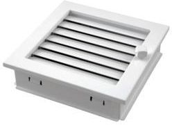 Kratka kominkowa MODERN 20x20cm z żaluzją - kolor: biały Kratka kominkowa modern przeznaczona jest do nawiewu ciepłego powietrza w sposób grawitacyjny lub wymuszony, a także do nawiewu lub wywiewu powietrza wentylacyjnego. Wykonane są z elementów stalowych odpowiednio przygotowanych w procesie technologicznym. Kratka pokryta jest farbą proszkową posiadającą bardzo dobre własności mechaniczne, a także wysoką stabilność koloru oraz odporność termiczną. Regulacja przepływu powietrza odbywa się poprzez otwieranie i zamykanie żaluzji. Podano wymiary montażowe kratki.