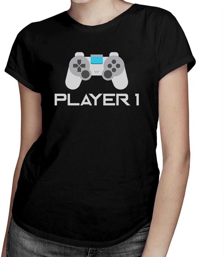 Player 1 Koszulka z nadrukiem dla par. Uszyta z przyjemnej w noszeniu bawełny, świetnie sprawdzi się w codziennym użytkowaniu także jako pomysł na prezent.