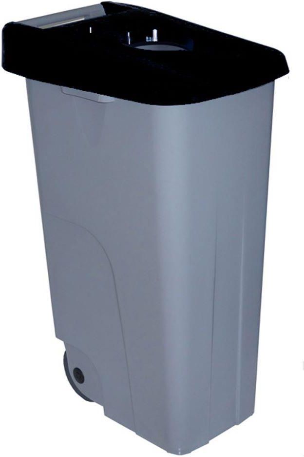 Pokrywa z otworem do kosza na śmieci z tworzywa PP w kolorze czarnym. Dostępna również w innych wariantach kolorystycznych.