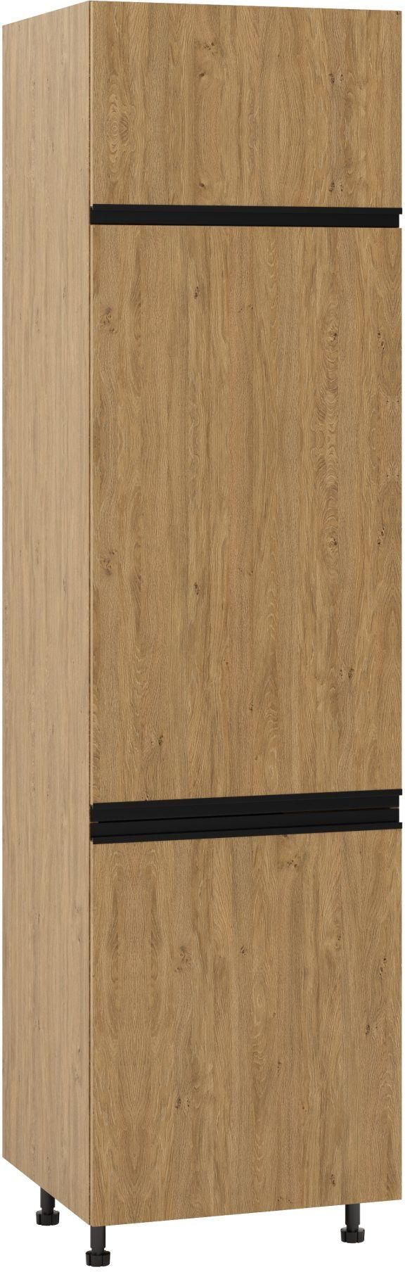 BARI PLUS SŁUPEK POD ZABUDOWĘ LODÓWKI WYSOKI LEWY DL-60-220 DĄB KAMIENNY to minimalistyczna, a jednocześnie zapewniająca wizualne ocieplenie propozycja słupka do kuchni wyposażona w innowacyjny system cichego domknięcia drzwi. Prezentowana kolekcja kuchni Komfort posiada ciepły odcień frontów laminowanych utrzymany w prostej formie idealnie odzwierciedlając naturalną strukturę dębu. Meble kuchenne w stylu loft posiadają aluminiowe uchwyty w postaci poziomej listwy w czarnym kolorze. Produkt łatwy w pielęgnacji oraz odporny na uszkodzenia mechaniczne mierzy 230 cm wysokości, 60 cm szerokości oraz 53 cm głębokości.