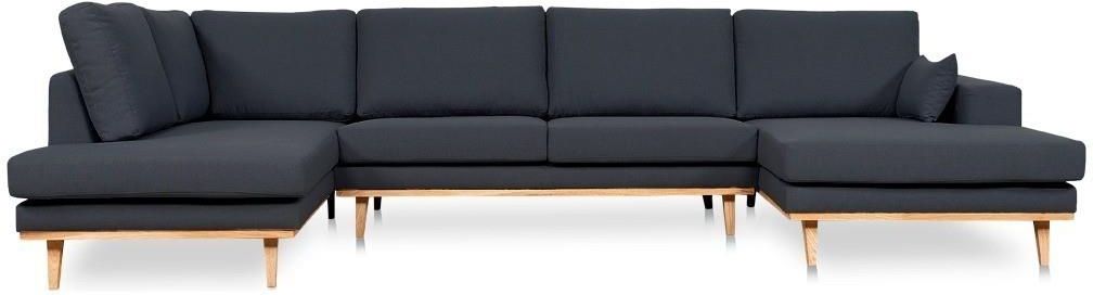 NAROŻNIK GRACJA U 353 CM Gracja U to starannie wykonany narożnik o dużych wymiarach, zaprojektowany w stylu skandynawskim. Ten model z pewnością znajdzie zastosowanie w wielu dużych wnętrzach, czy też salonach firmowych. Mebel przeznaczony jest dla wszystkich, ceniących sobie jakość oraz eleganckie i estetyczne wykończenie. Wygodne poduszki oparciowe do których stosujemy granulat piankowy oraz sprężyny faliste, pokryte wysokoelastyczną pianką w siedziskach, zapewniają komfort użytkowania na długie lata. Ponadto poduszki oparciowe (wym.: 80 x 45 cm) i siedziskowe mają wszyty zamek u dołu, dzięki czemu można je z łatwością ściągnąć. Prezentowany narożnik zdobi dębowa podstawa, którą możemy wykonać w kolorze naturalnego dębu, dębu bielonego, wenge lub czarnym. Wysokie nóżki pozwalają na dokładne czyszczenie oraz swobodne stosowanie automatycznych robotów sprzątających. W swojej ofercie posiadamy również duży wybór oraz szeroką gamę kolorystyczną tkanin. Materiały obiciowe, które najchętniej polecamy to tkaniny welurowe (matowe lub połyskujące) odporne na ścieranie, przyjemne dla skóry oraz łatwe w utrzymaniu czystości. Ten produkt jest nieprefabrykowany, wyprodukowany według specyfikacji Konsumenta lub służący zaspokojeniu jego zindywidualizowanych potrzeb. Szczegóły w regulaminie. Podane wymiary mebli tapicerowanych (sofy, narożniki, łóżka) to wymiary orientacyjne, które mogą nieznacznie różnić się od rzeczywistych (tolerancja wymiaru: +/- do 3 cm). Ewentualne różnice mogą być spowodowane różnymi rodzajami zastosowanych materiałów obiciowych oraz wypełnienia – dotyczy to w szczególności produktów dostępnych w kilku wariantach kolorystycznych.