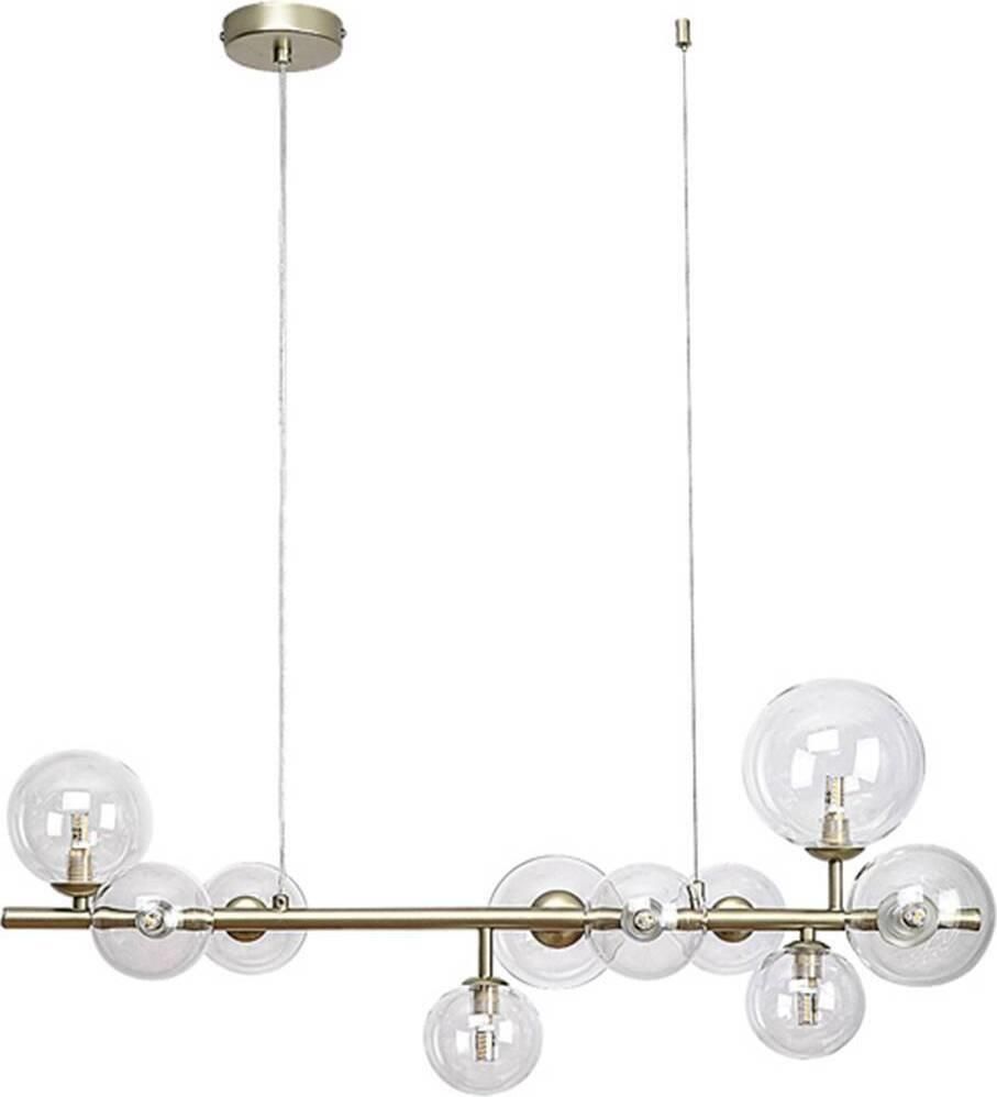 Lampa wisząca glamour złota szklane kule podłużna 120 cm 10 pkt Rabalux Oprawa wisząca Aslov firmy Rábalux z dziesięcioma punktami świetlnymi jest doskonałym wyborem dla osób poszukujących spektakularnego modelu o kreatywnym designie. Oprawa została wykonana z metalu w błyszczącym kolorze złotym, a …