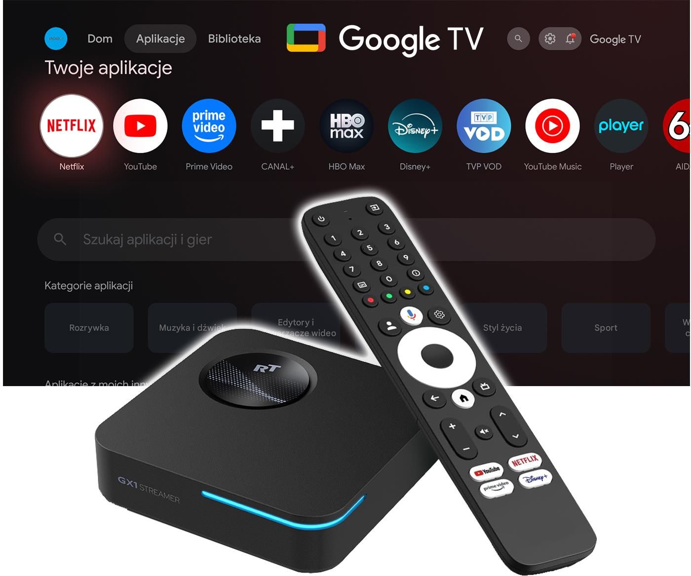 SmartTV Android RockTek GX1 UHD Streamer box 4/32GB GoogleTV 4K 2025 WIFI Certyfikowane przez Google urządzenie multimedialne z najnowszym systemem operacyjnym GoogleTV (Android wersja 12 - oficjalny system dla smart TV boxów), które zmieni każdy telewizor w wysokiej jakości Smart TV. O wydajność i …