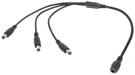 Rozgałęźnik zasilania DC gniazdo - 3x wtyk 2,1/5,5 Rozgałęziacz zasilania do systemów CCTV, LED, DC 3x wtyk 2,1/5,5 - 1x gniazdo 2,1/5,5 na kablu 25cm Umożliwia w szybki i bezinwazyjny sposób podłączenie trzech odbiorników do jednego źródła zasilania (np. sterowniki, kontrolery, taśmy LED, moduły …
