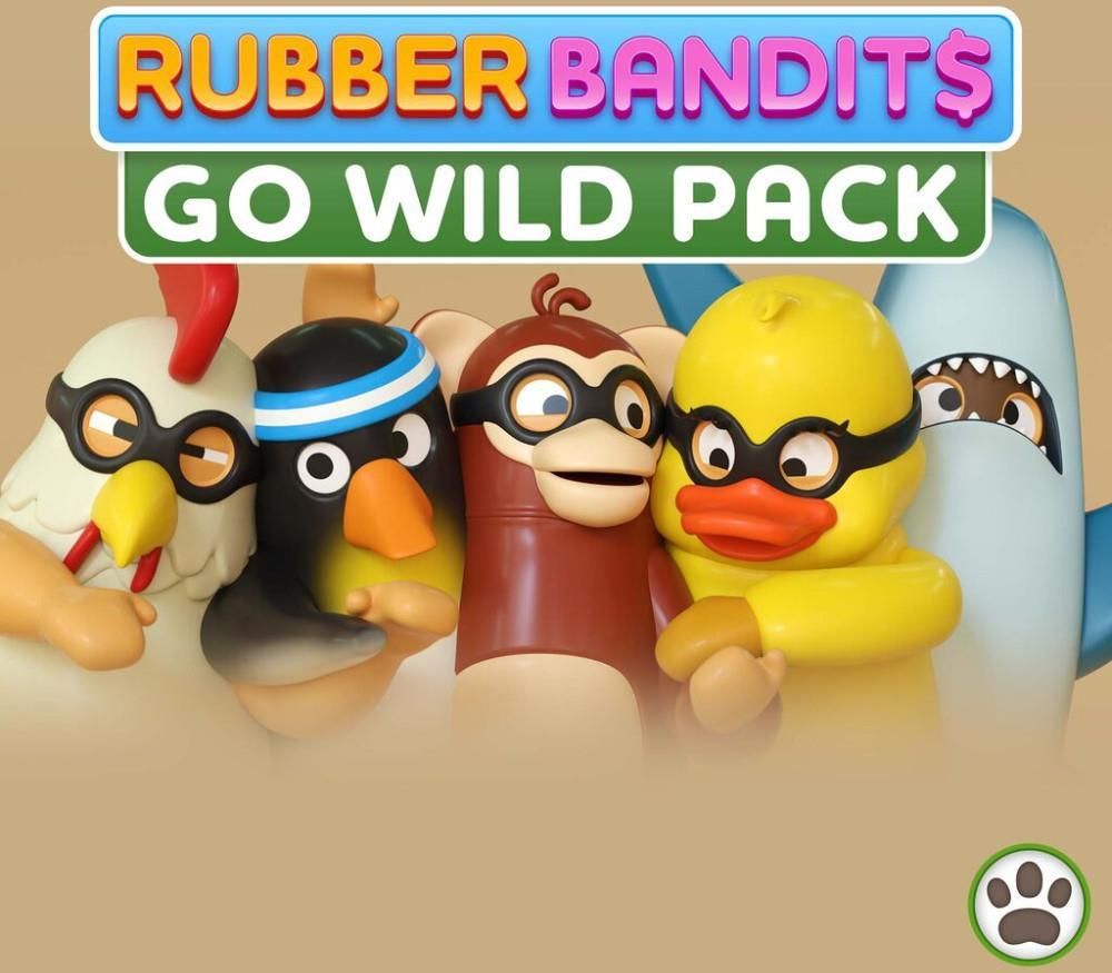 Aby zagrać w tę zawartość, wymagana jest podstawowa wersja gry Rubber Bandits na Steam. Pakiet Go Wild jest dla wszystkich miłośników natury. Ten pakiet zawiera 5 postaci, które zrobią wrażenie na Twoich znajomych: Kogut Rekin Pingwin Małpa Gumowa Kaczka