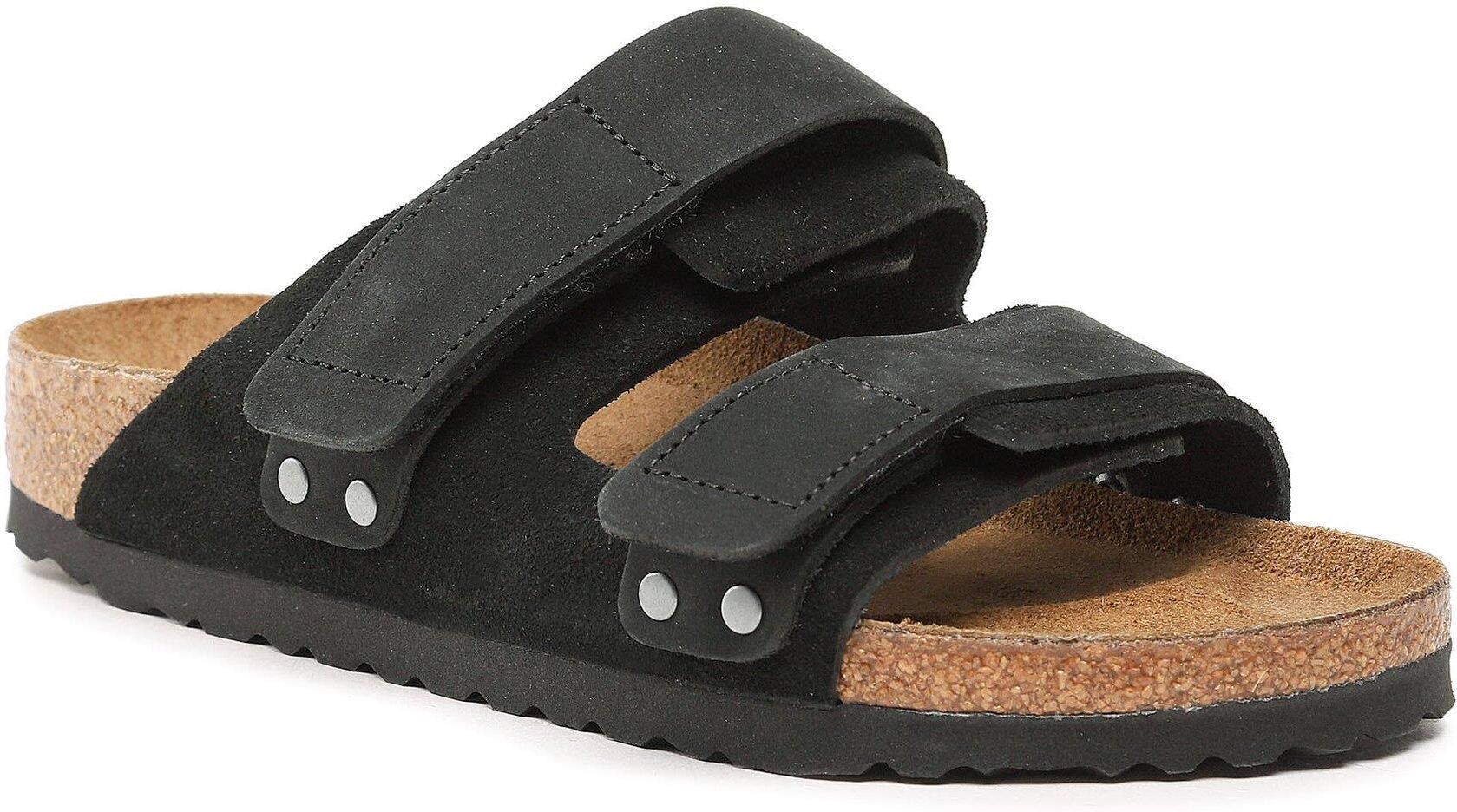 Klapki Birkenstock Uji, które łączą sportowy styl i najwyższą jakość. Wykonane z nubuku, oferują luksusowy wygląd i trwałość. Wsuwany model z płaską podeszwą i dwoma regulowanymi paskami na rzepy zapewnia idealne dopasowanie. Wnętrze ze skóry i wkładka o kształcie odwzorowującym zdrowy odcisk stopy …