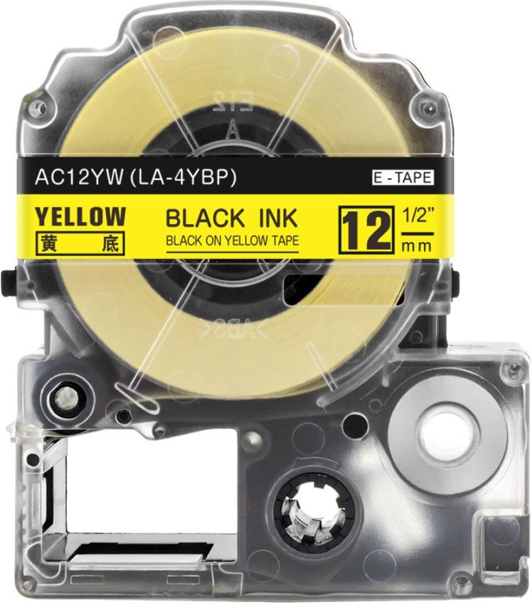 Standardowa samoprzylepna taśma Epson LK do znakowania elementów w układach elektrycznych i telekomunikacyjnych. Wielozadaniowa taśma jest niezastąpiona we wszystkich wymagających miejscach, takich jak biuro, magazyn, rozdzielnia elektryczna. ? Najważniejsze cechy: Żółta taśma z czarnym nadrukiem Szerokość 12mm, długość 8m Mogą być również stosowane na grzbietach okładek do płyt CD/CD-R/DVD czy kaset magnetofonowych Odporne taśmy LK zapewniają długoletnią trwałość Wodoodporne i trwałe zarówno w cieple, jak i zimnie Taśma posiada dzielony wzdłuż podkład zabezpieczający klej ? Kompatybilność: LabelWorks LW-300 LabelWorks LW-400 LabelWorks LW-K400 LabelWorks LW-600P LabelWorks LW-700 LabelWorks LW-900P LabelWorks LW-1000P LabelWorks LW-Z700 LabelWorks LW-Z900 LabelWorks LW-Z5xxx Series LabelWorks LW-Z5010BE LabelWorks LW-Z5000BE