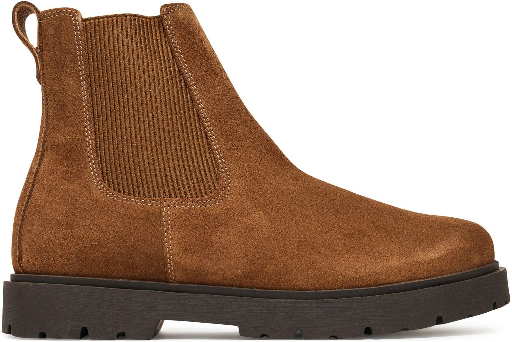 Buty Damskie Sztyblety Birkenstock Highwood Slip On Mid 1030632 Beżowe Symbol: BK334-a Kolor: Beżowy Rozmiar: 36 (23 cm) Wiecej rozmiarów i kolorów znajdziesz na pozostałych aukcjach. Opis produktu Damskie sztyblety Birkenstock Highwood Slip On Mid to połączenie klasycznej formy z funkcjonalnym komfortem charakterystycznym dla tej niemieckiej marki. Cholewka za kostkę została wykonana z naturalnego zamszu, który cechuje się miękkością, elastycznością i doskonałym dopasowaniem do stopy. Obuwie wciągane, bez zamka, z charakterystycznymi elastycznymi wstawkami po bokach, co ułatwia zakładanie i zdejmowanie obuwia. Buty zostały wyposażone w innowacyjną wkładkę Deep Blue, która zapewnia wsparcie dla stopy oraz wyjątkowy komfort noszenia przez cały dzień. Podeszwa z dodatkiem naturalnego korka oraz bieżnikowana powierzchnia wpływają na amortyzację i przyczepność, nawet w zmiennych warunkach pogodowych. Neutralny kolor sprawia, że sztyblety łatwo dopasować do codziennych i casualowych stylizacji. To idealna propozycja dla kobiet szukających wygodnych i stylowych butów na sezon przejściowy i chłodniejsze dni. Galeria zdjęć